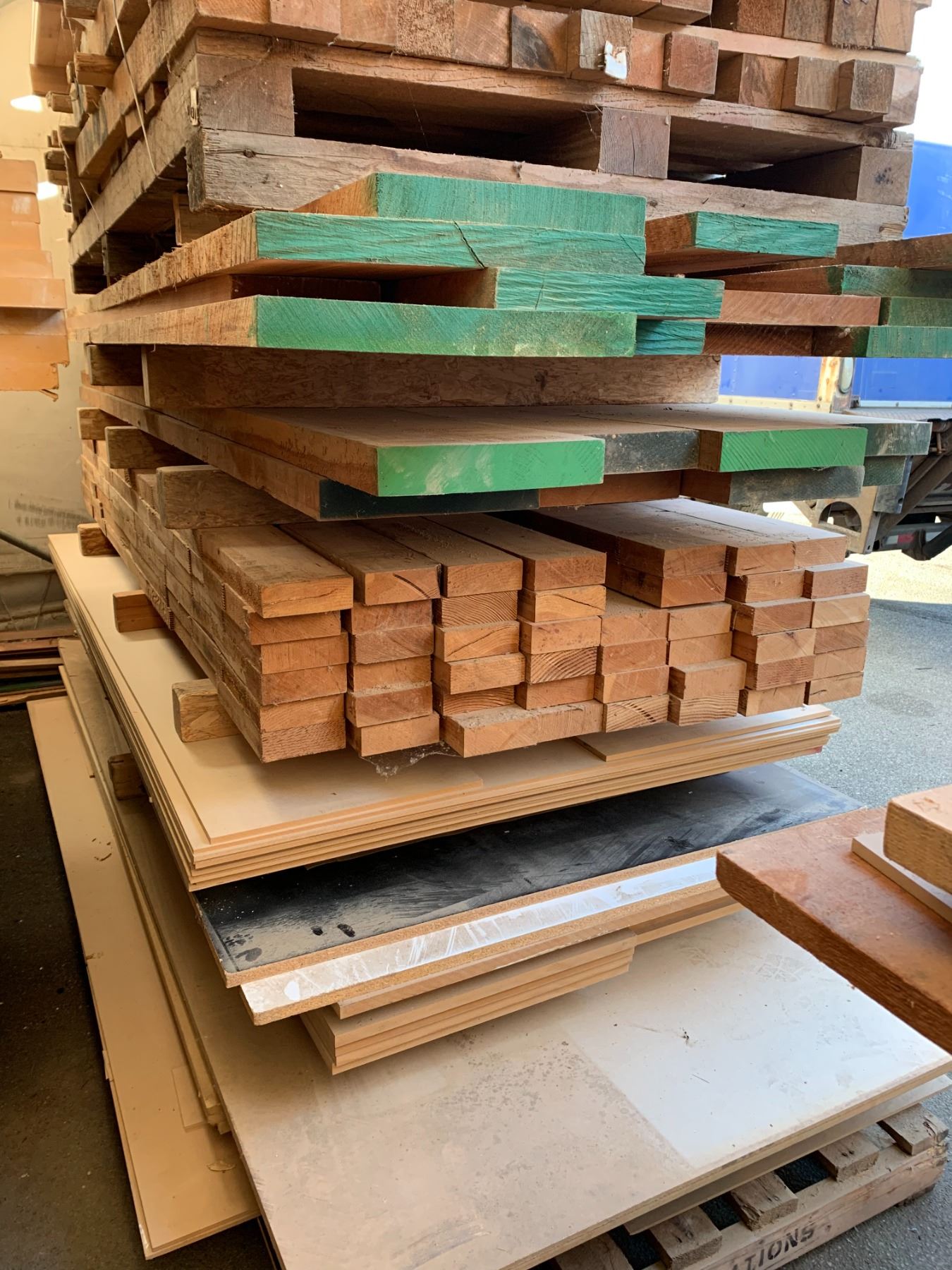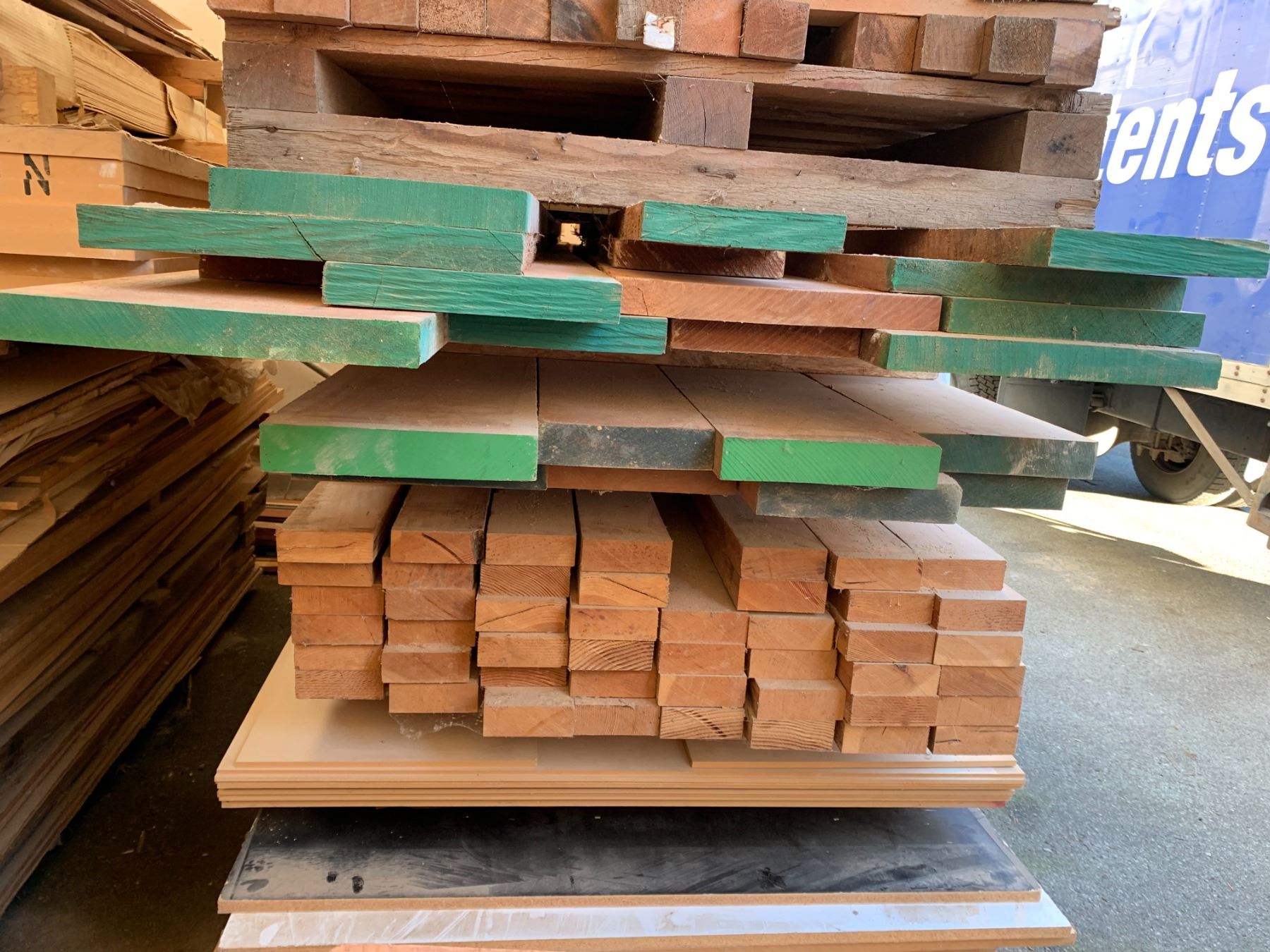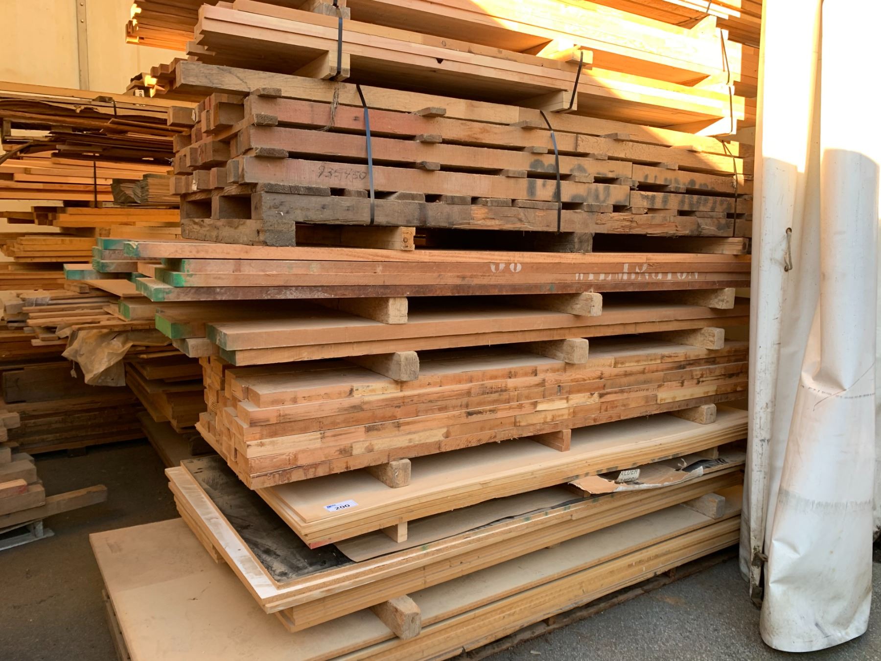 PALLET OF ASSORTED HARDWOOD BOARDS AND PRESSED BOARD SHEETS-VARIOUS WOOD TYPES & SIZES