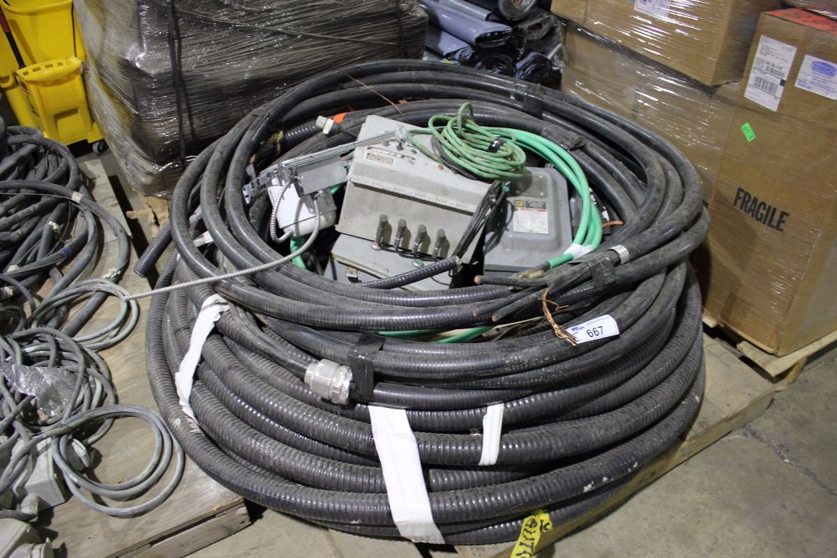 PALLET OF ASSORTED HEAVY DUTY ELECTRICAL WIRING & BREAKER BOXES