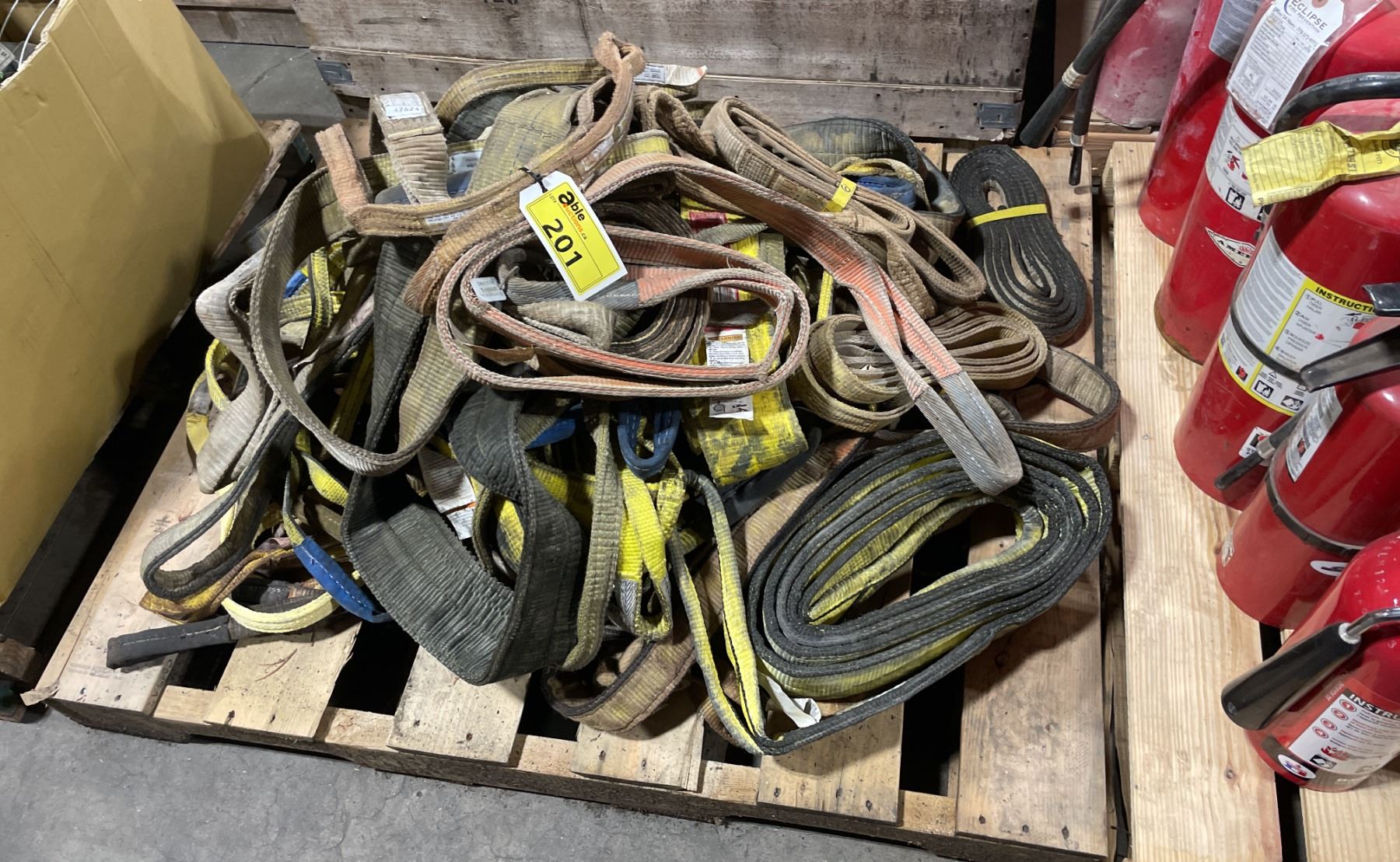 PALLET OF ASSORTED INDUSTRIAL LIFTING SLINGS / STRAPS *MUST TAKE ALL ON PALLET*