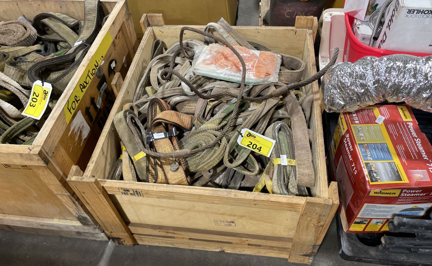 PALLET OF ASSORTED INDUSTRIAL LIFTING SLINGS / STRAPS *MUST TAKE ALL ON PALLET*