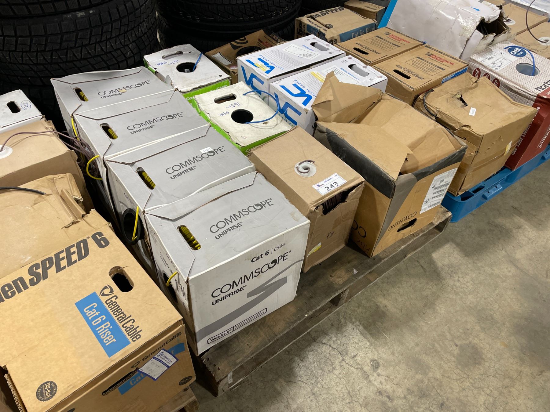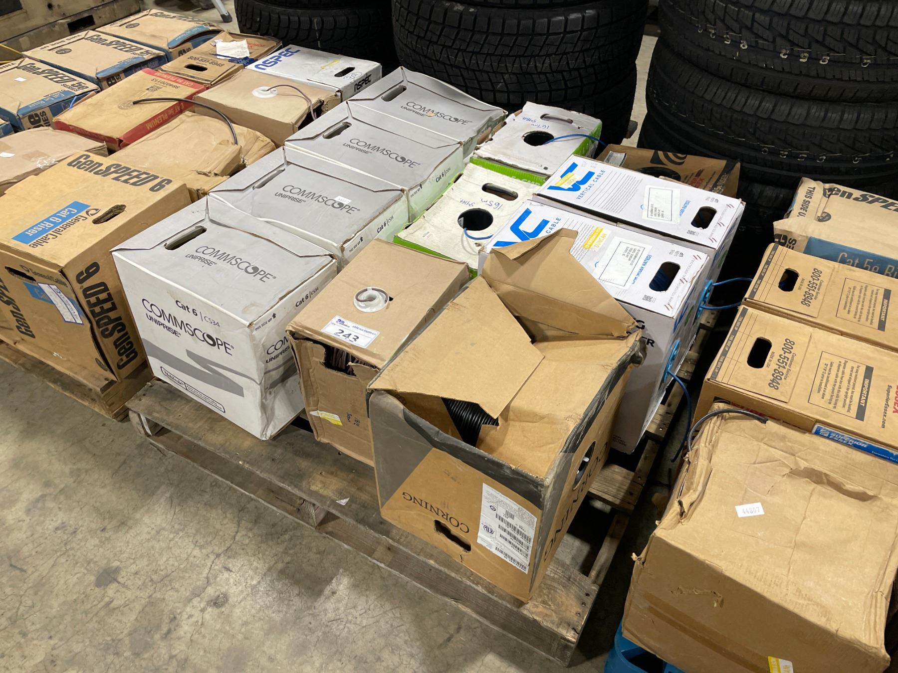 PALLET OF ASSORTED INDUSTRIAL REELS OF CABLE / ELECTRICAL WIRE *MUST TAKE ALL ON PALLET*