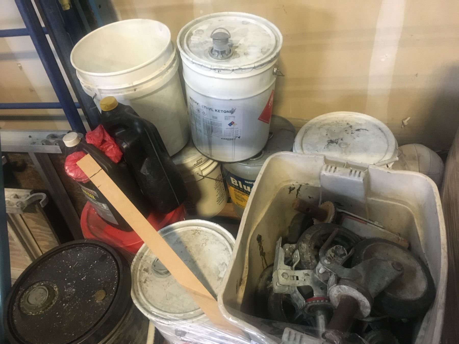 PALLET OF ASSORTED ITEMS-CASTORS, CHEMICALS AND MISCELLANEOUS