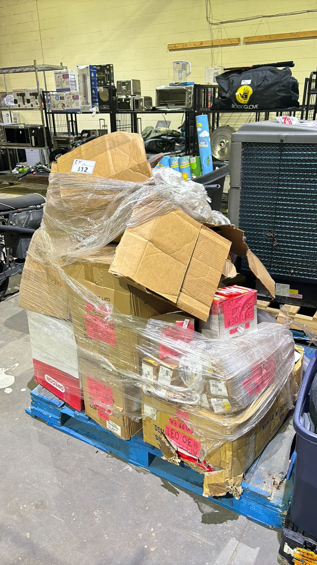 PALLET OF ASSORTED ITEMS INCLUDING; AIR FILTERS, SPINDLE ASSEMBLY, EXACT REPLACEMENT BELTS & MORE