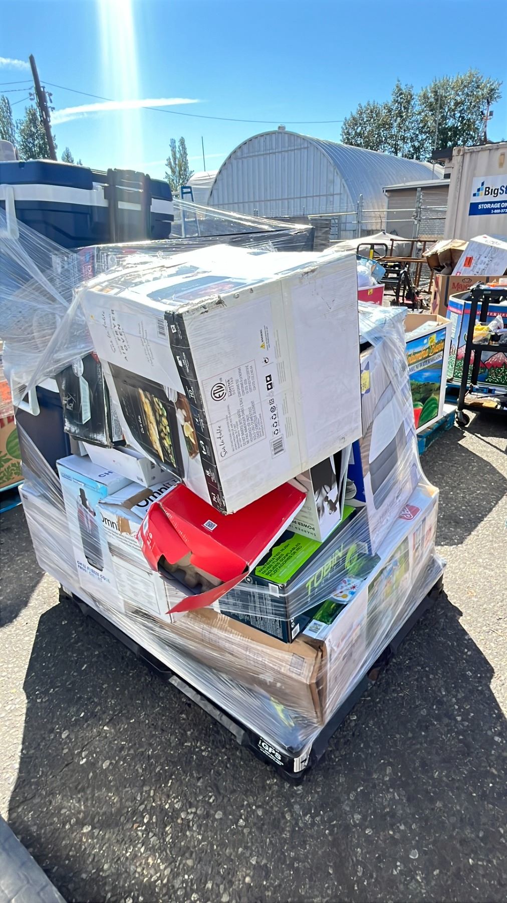 PALLET OF ASSORTED ITEMS INCLUDING; AIR MATTRESS, MONITOR, AIR FRYER & MORE (UNKNOWN WORKING CONDITION, MAY BE MISSING PARTS)