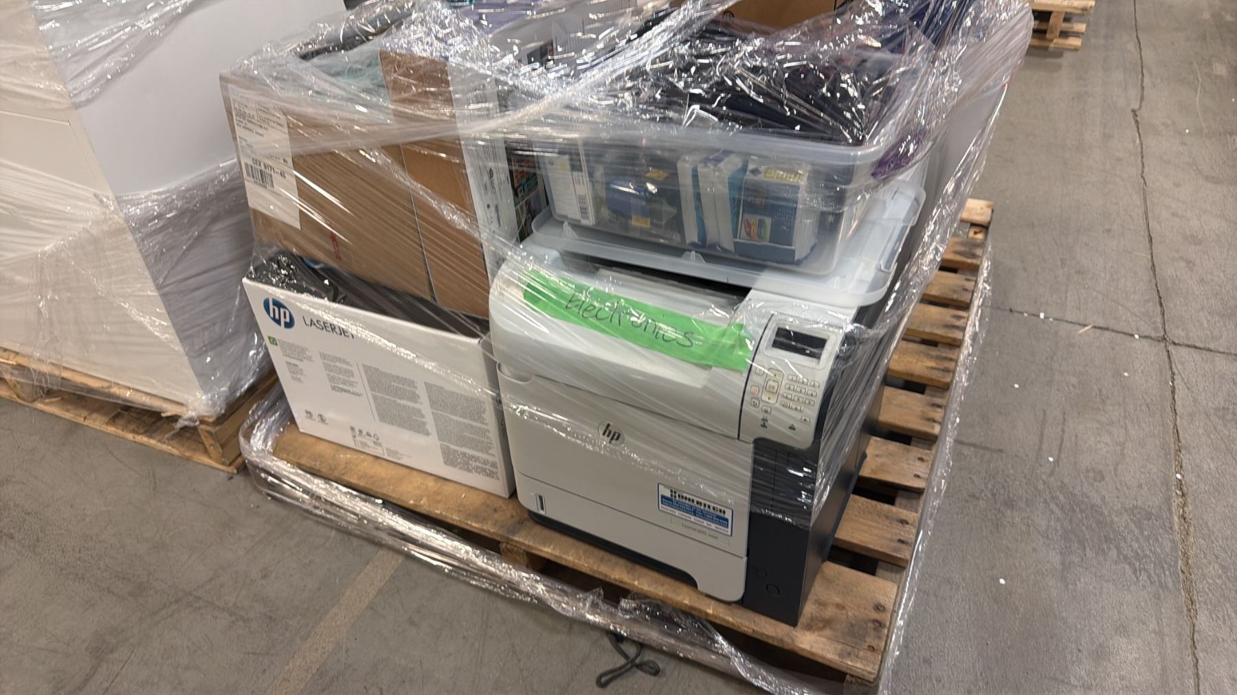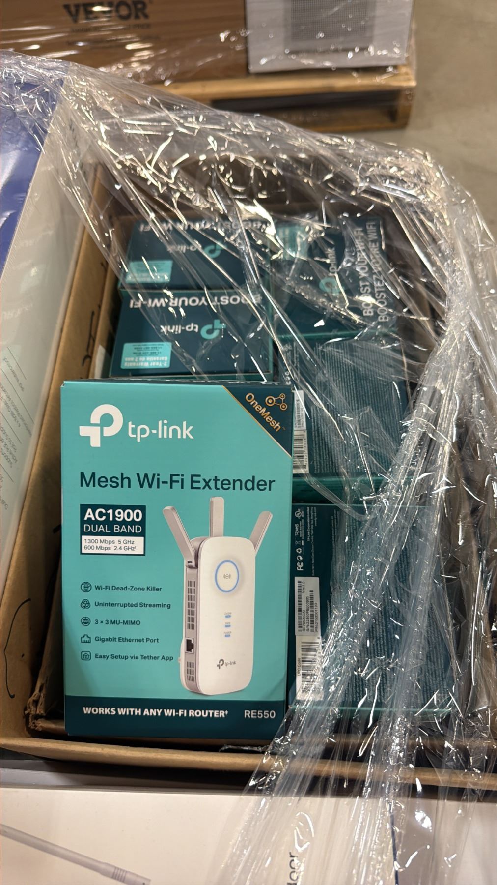 PALLET OF ASSORTED ITEMS INCLUDING; FIRST AID KIT, RECYCLE BIN, TP-LINK MESH WI-FI EXTENDERS & MORE