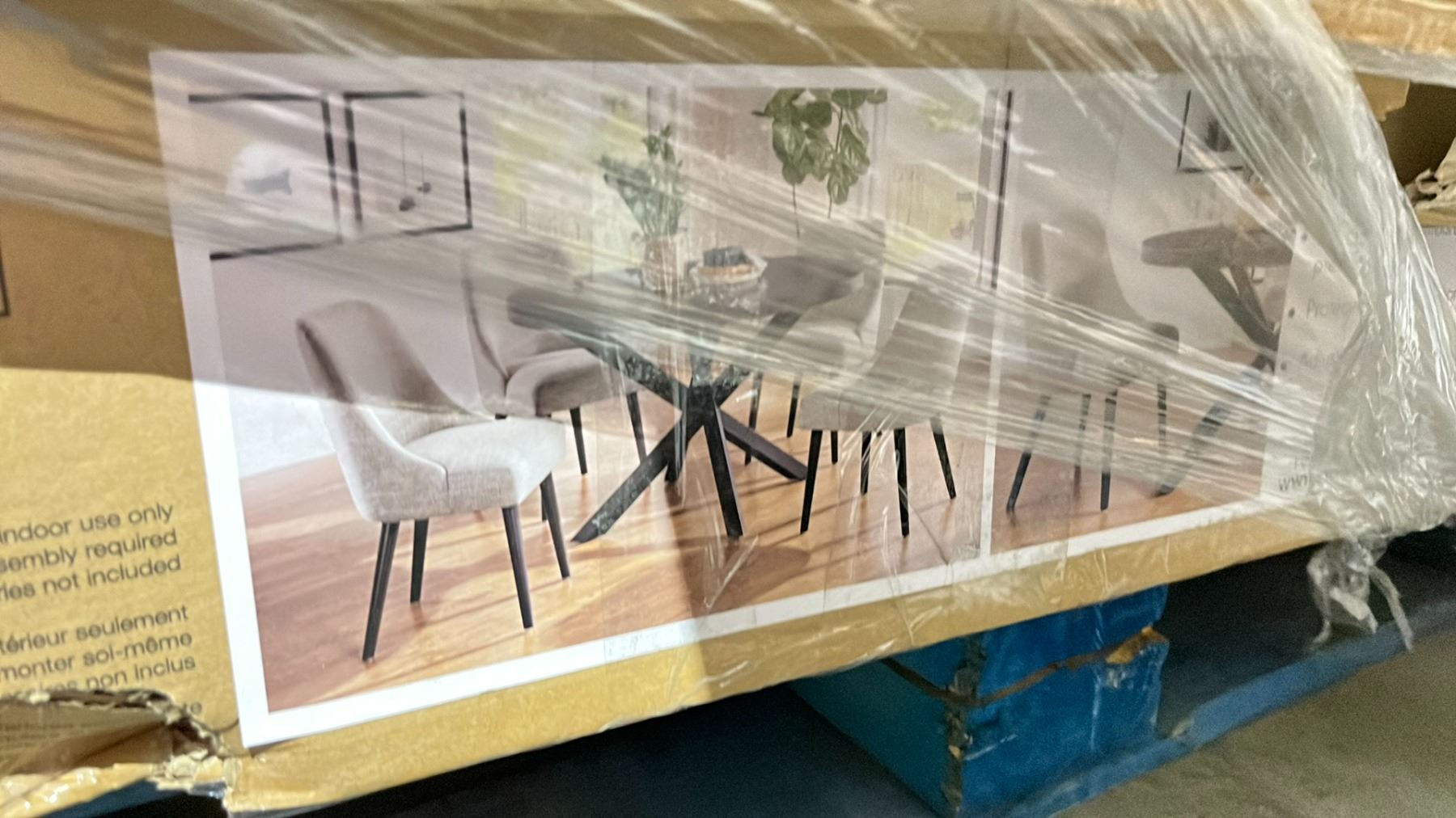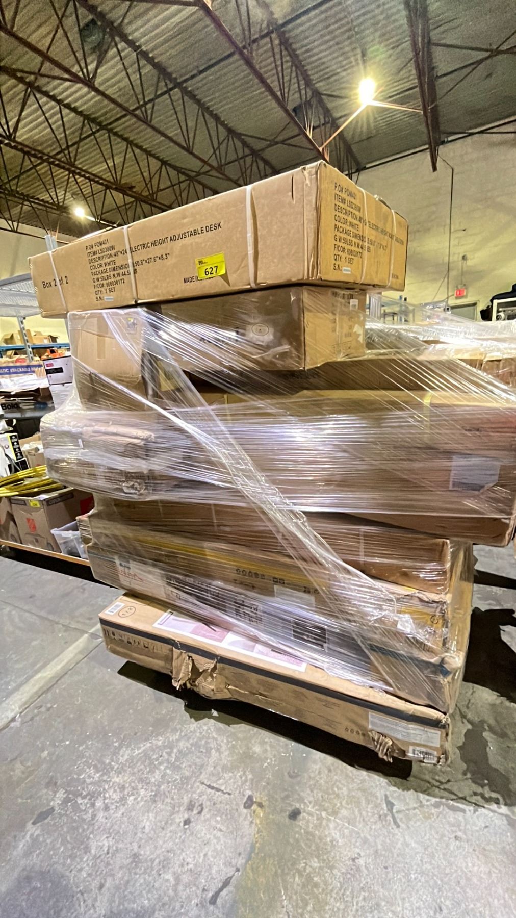 PALLET OF ASSORTED ITEMS INCLUDING; HEIGHT ADJUSTABLE DESK, CHAIRS, TABLE AND MORE