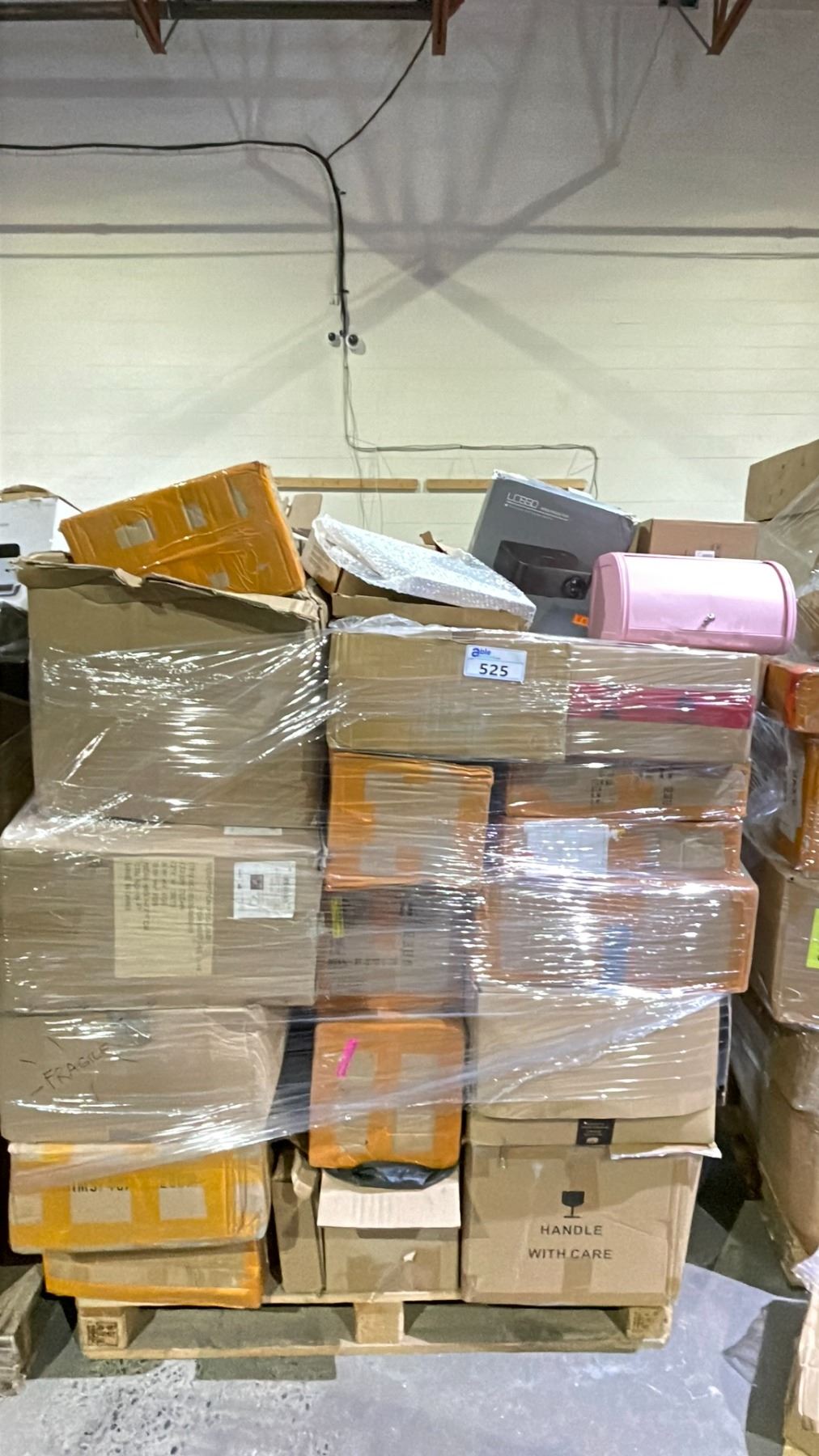 PALLET OF ASSORTED ITEMS INCLUDING; TIN ROLL UP BAKERY CONTAINER, PROJECTOR, LED LIGHT BOARD & MORE