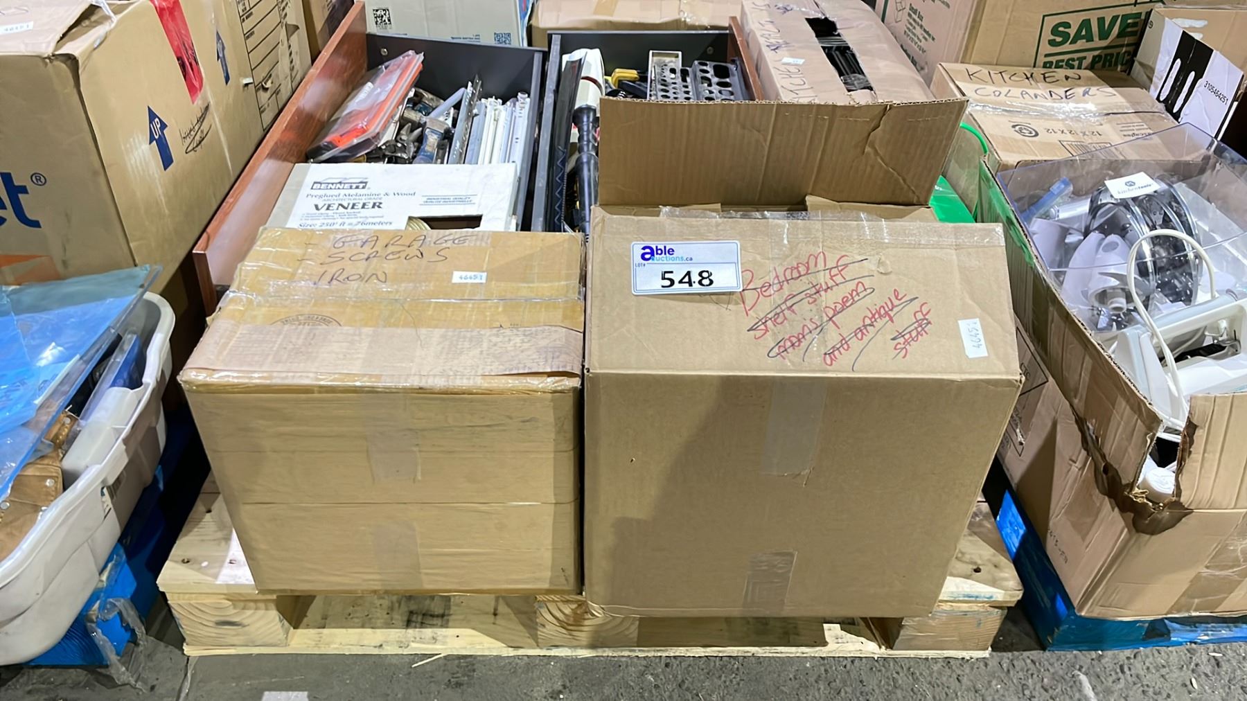 PALLET OF ASSORTED ITEMS INCLUDING; TOOLS, KITCHENWARE & MORE