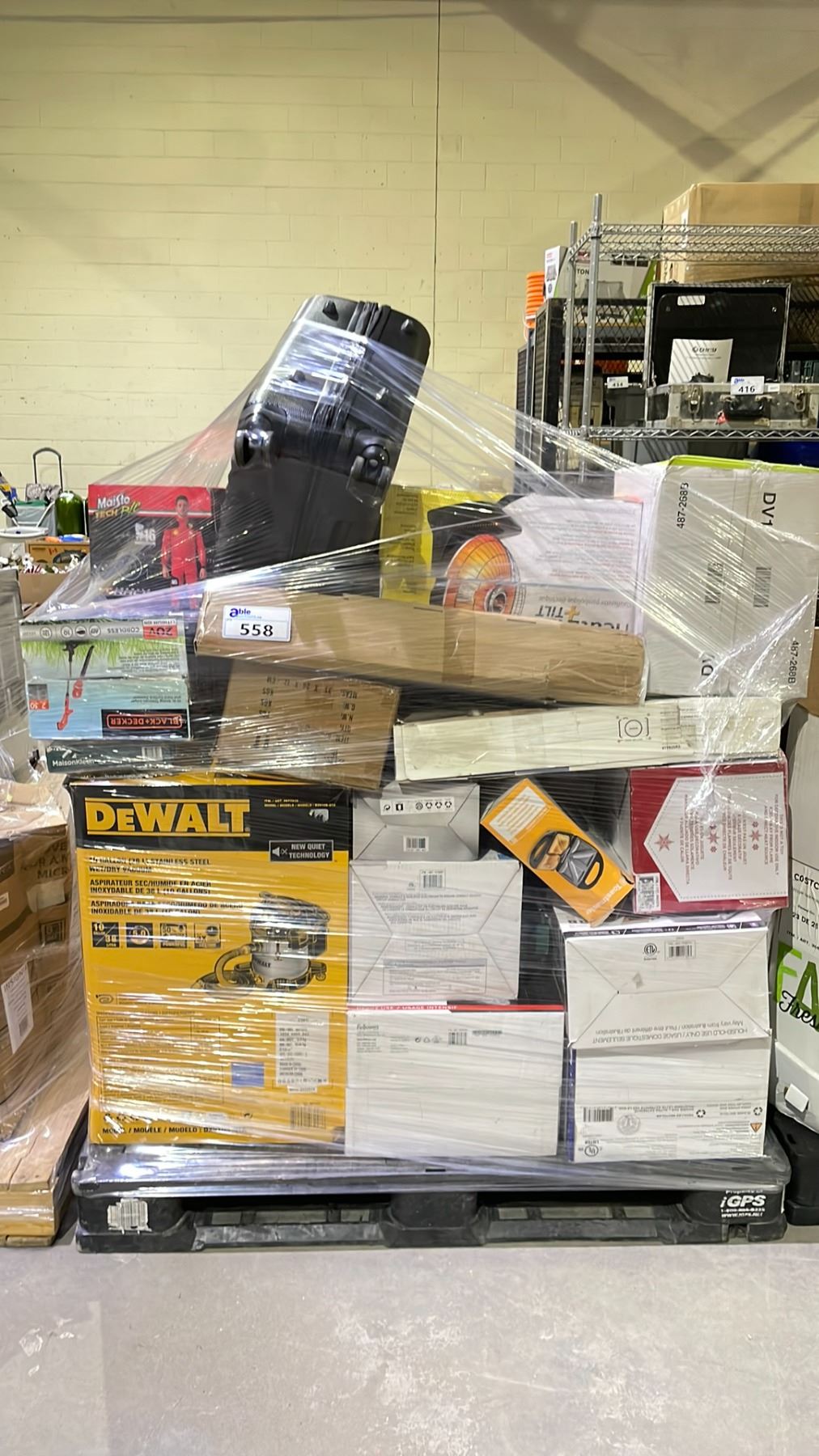 PALLET OF ASSORTED ITEMS INCLUDING; WET/DRY VAC, RC CAR, PARABOLIC HEATER & MORE (UNKNOWN WORKING
