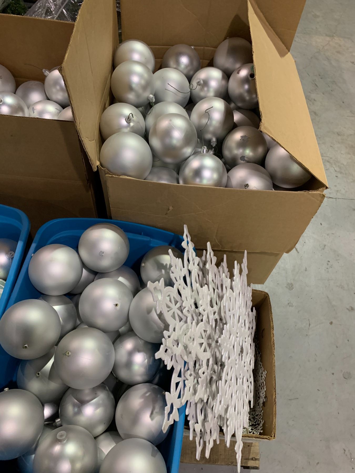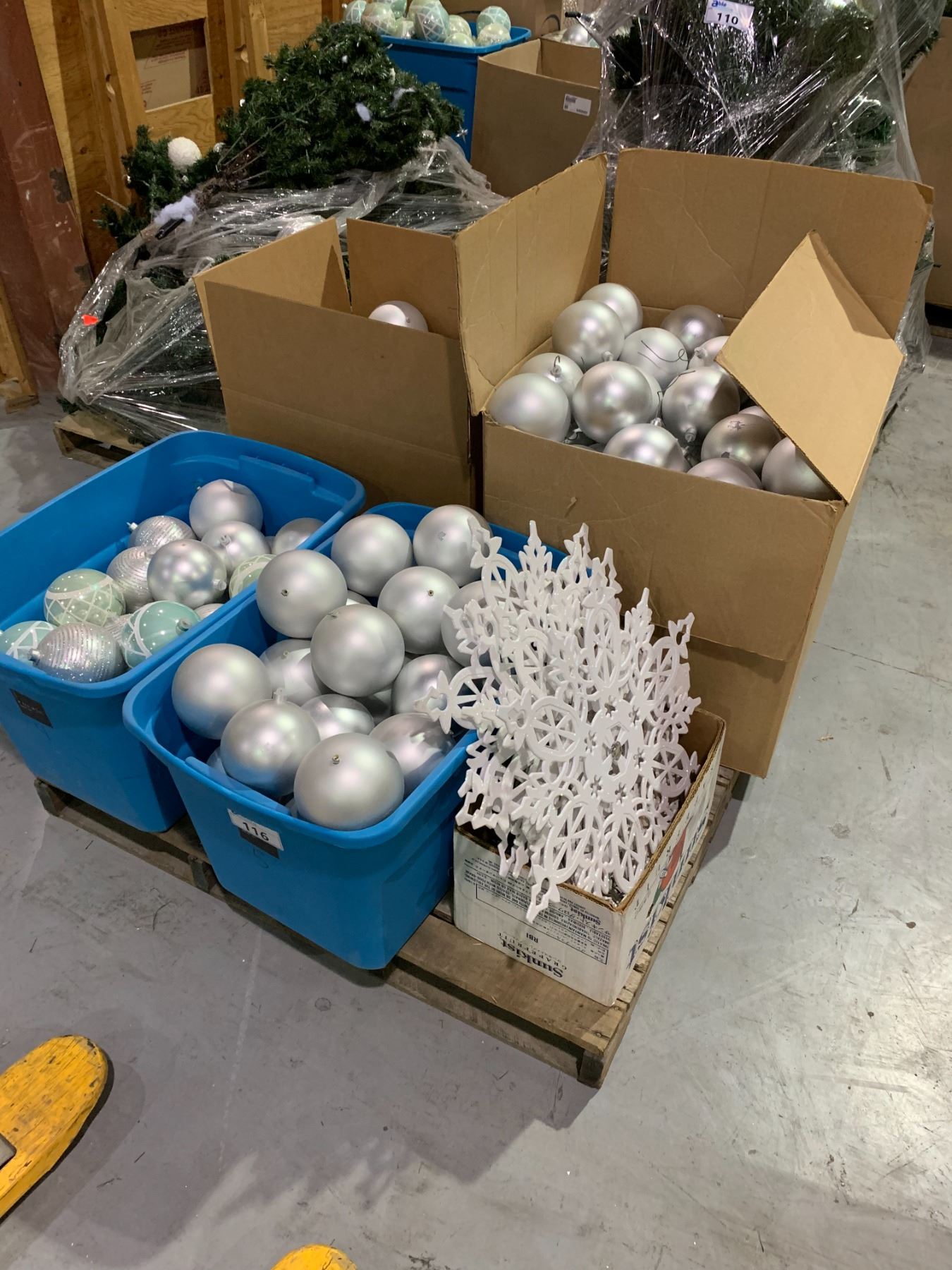 PALLET OF ASSORTED LARGE CHRISTMAS BULBS & DECORATION ITEMS