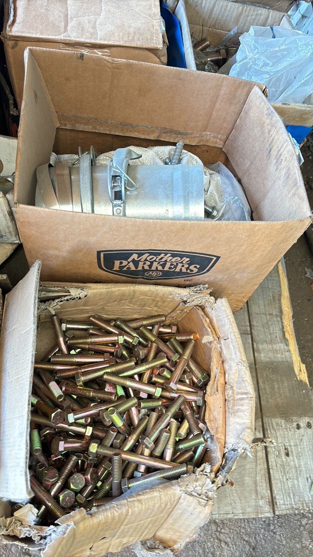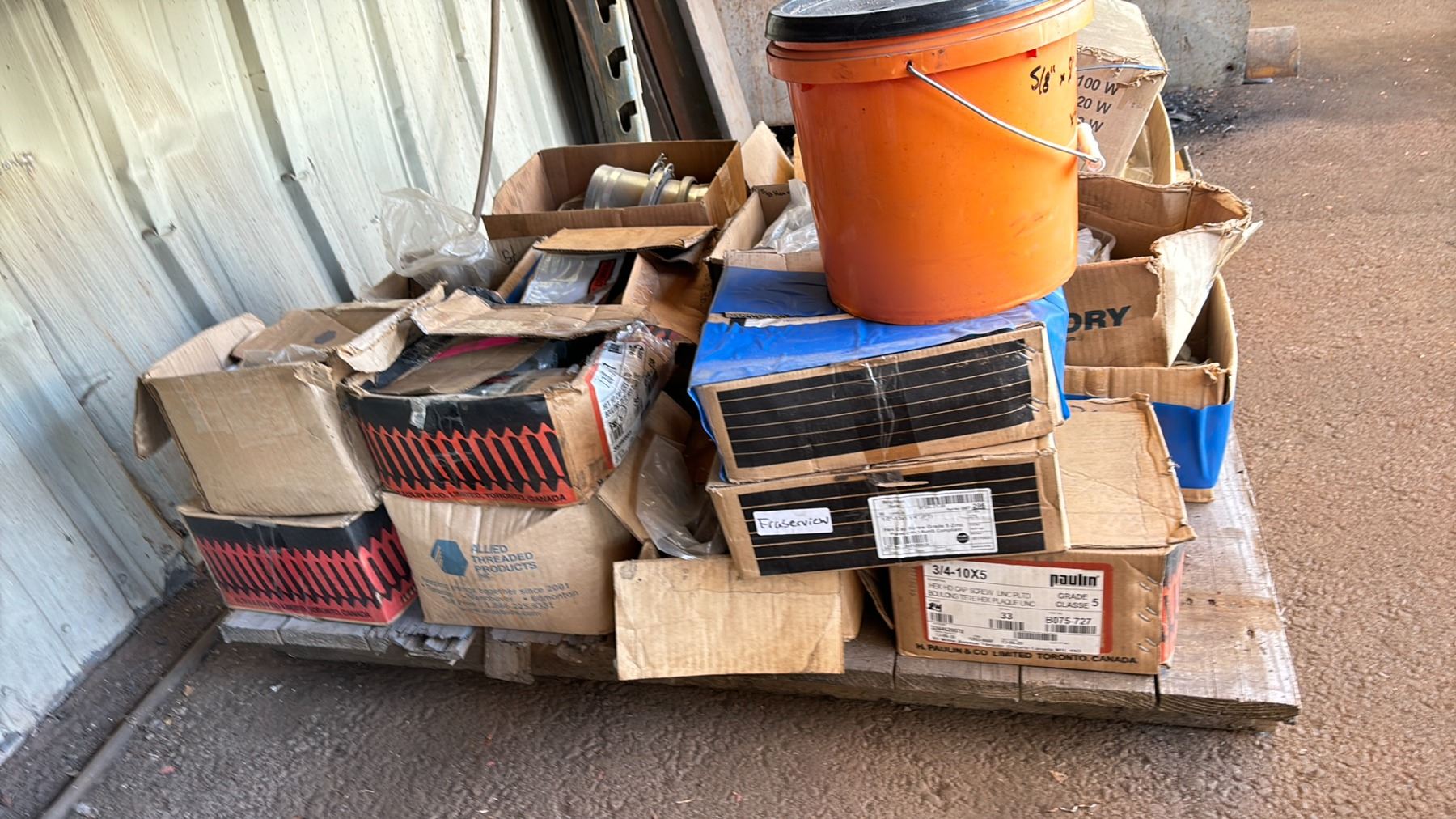 PALLET OF ASSORTED LARGE GAUGE BOLTS/NUTS AND WASHERS