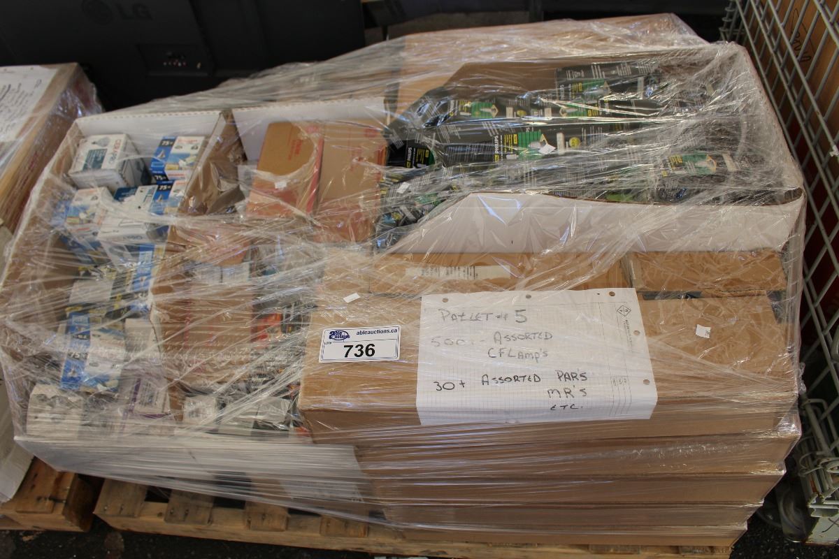 PALLET OF ASSORTED LIGHT BULBS AND LIGHTING EQUIPMENT
