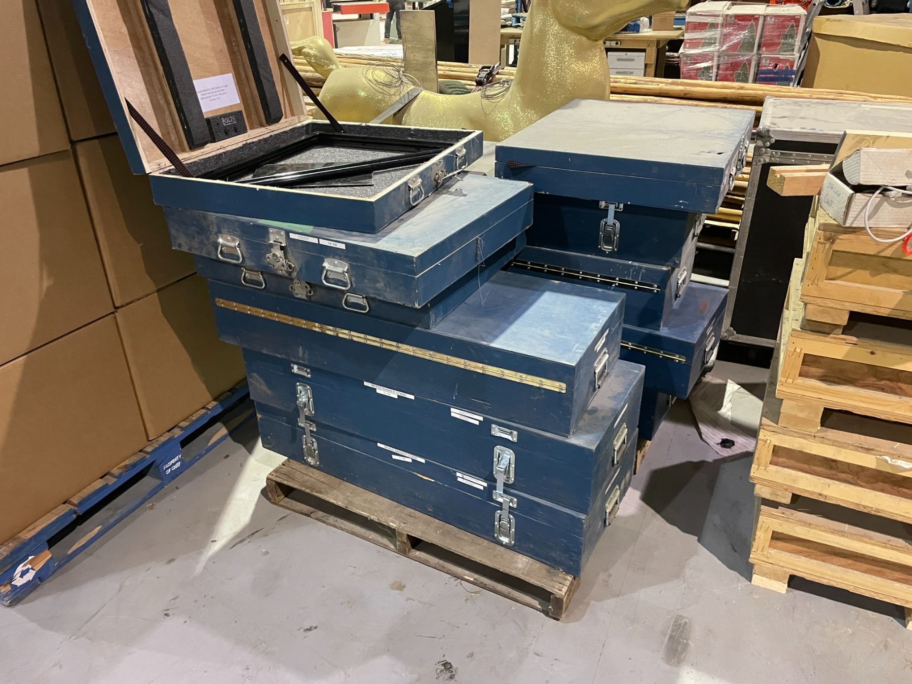 PALLET OF ASSORTED LOLLYPOP SIGNS & BANNER STANDS IN WOODEN TRANSPORT CRATES