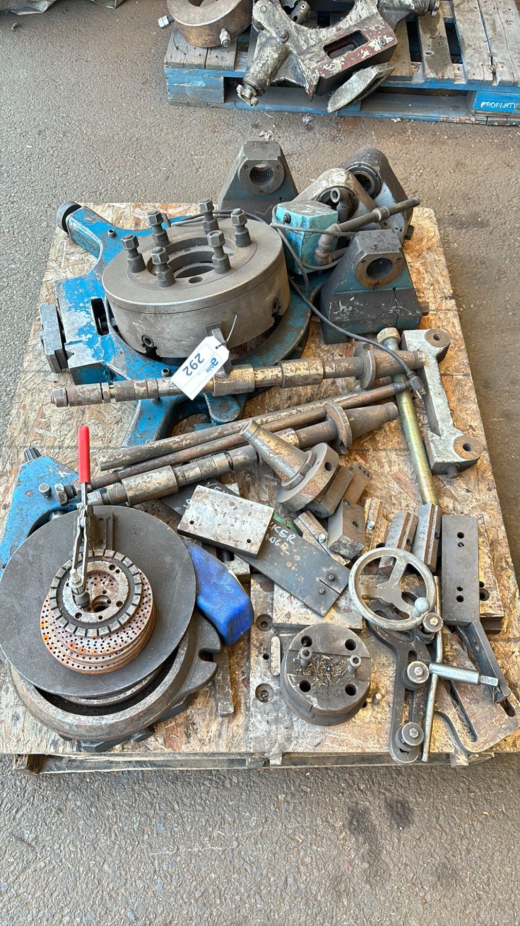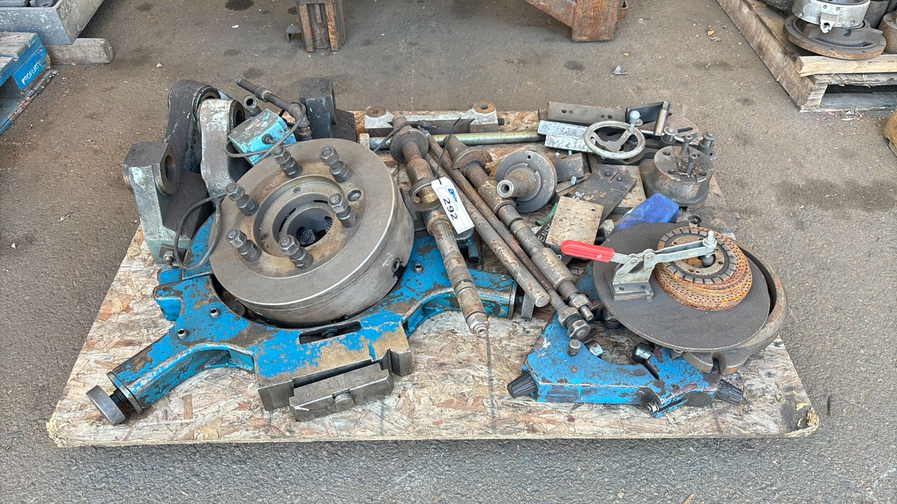 PALLET OF ASSORTED MACHINE PARTS (MOSTLY LATHE PARTS)