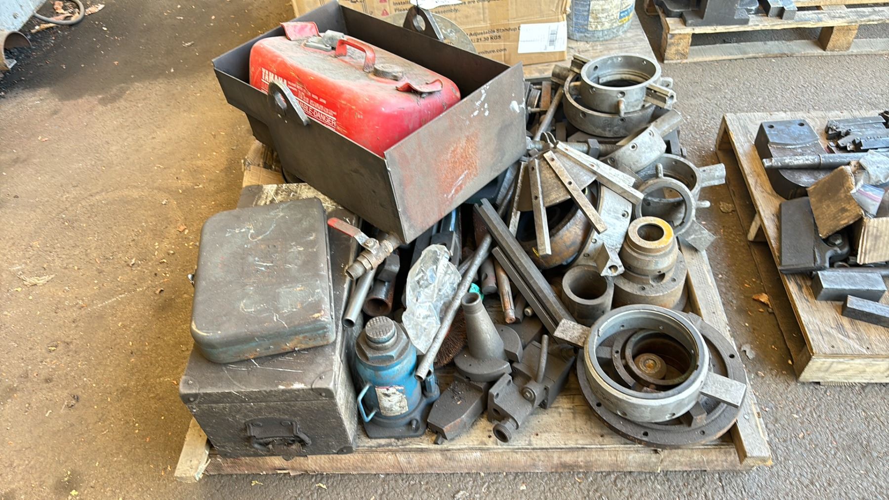 PALLET OF ASSORTED MACHINE PARTS (MOSTLY LATHE PARTS)
