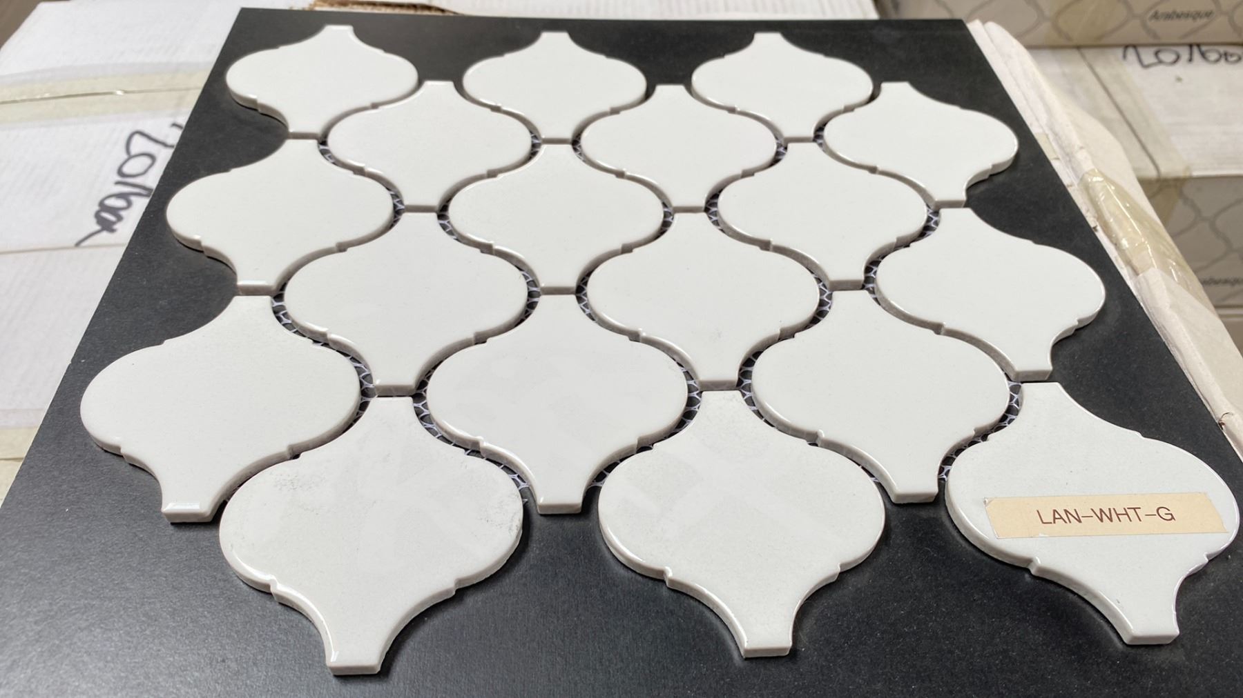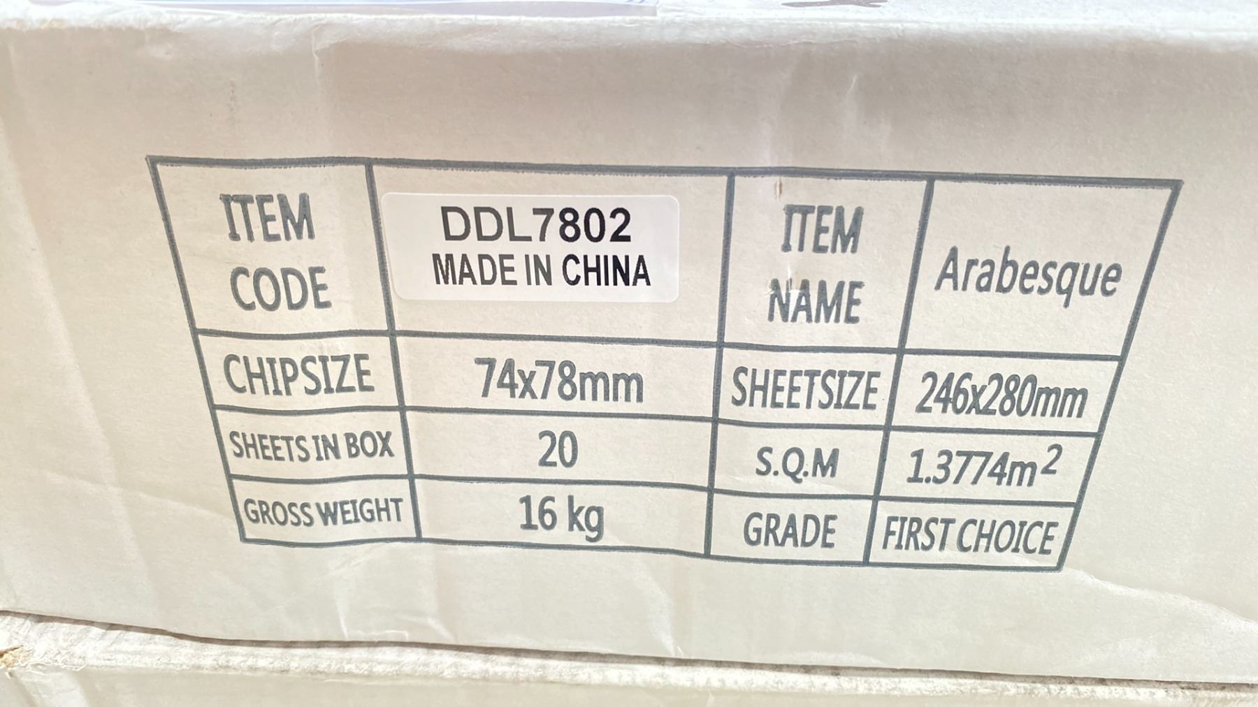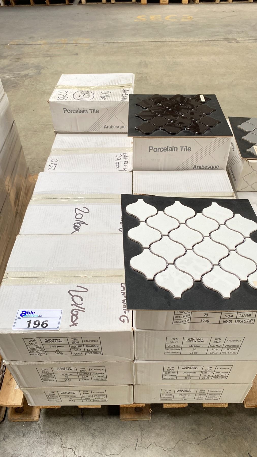 PALLET OF ASSORTED MOSAIC TILE; 13 BOXES OF LAN-WHT-G (APPROX 260SQ.FT. TOTAL) AND 14 BOXES OF LAN-BLK-M (APPROX 280SQ.FT. TOTAL)