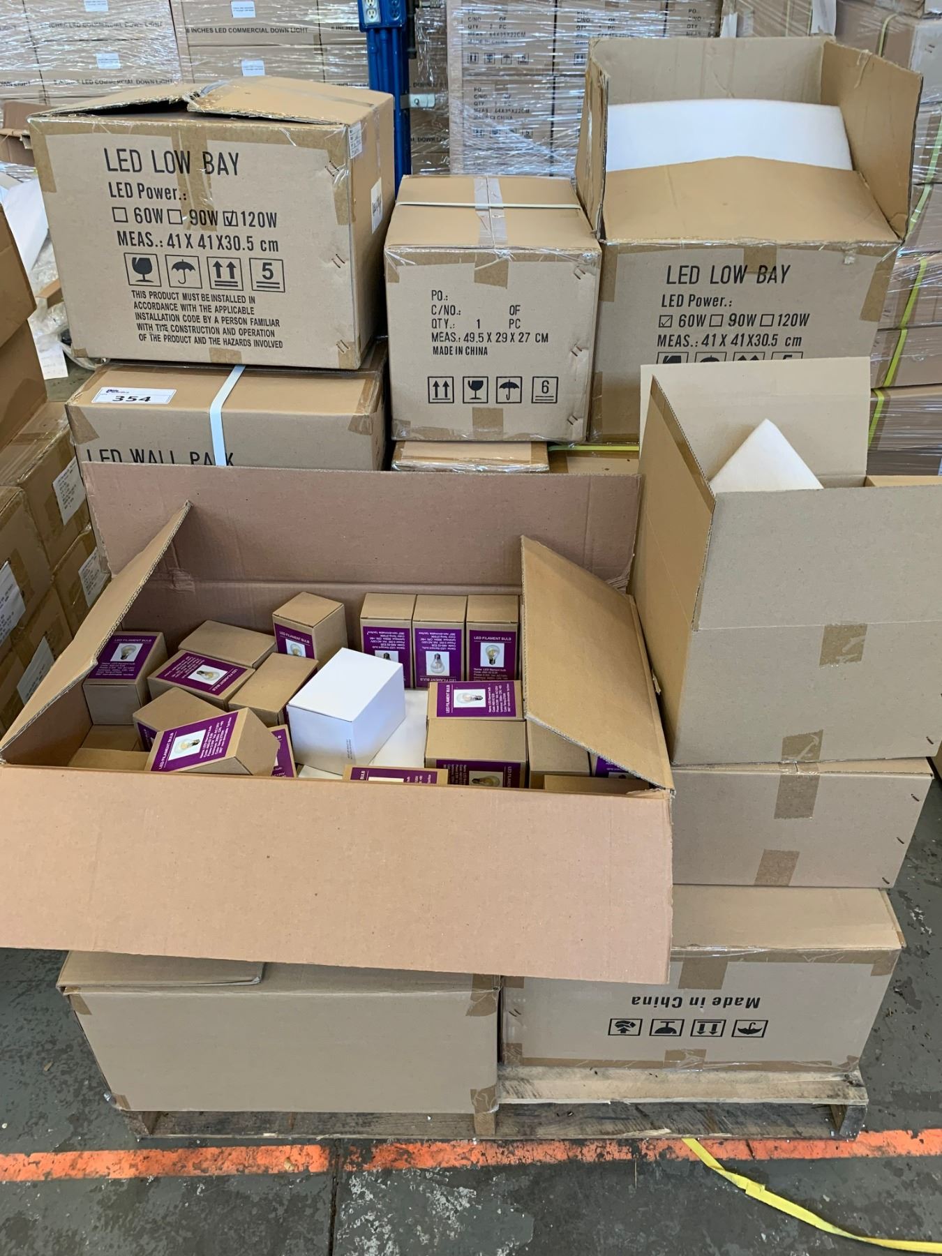 PALLET OF ASSORTED NEW LED PRODUCT-WALL PACKS, BULBS, TUBE LIGHTS, ETC