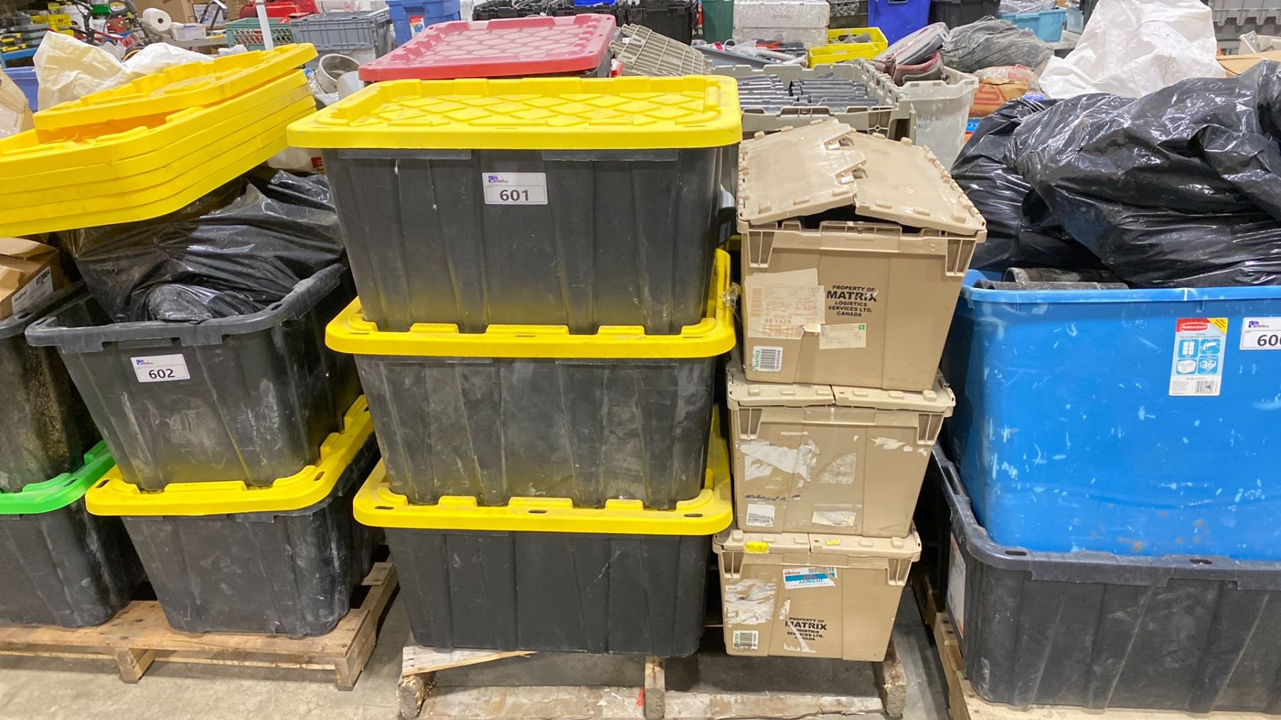 PALLET OF ASSORTED PVC MATERIAL / PLUMBING HARDWARE *BINS INCLUDED*