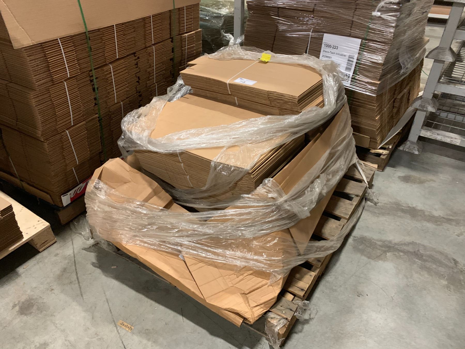 PALLET OF ASSORTED SIZE FLATTENED PACKAGING BOXES