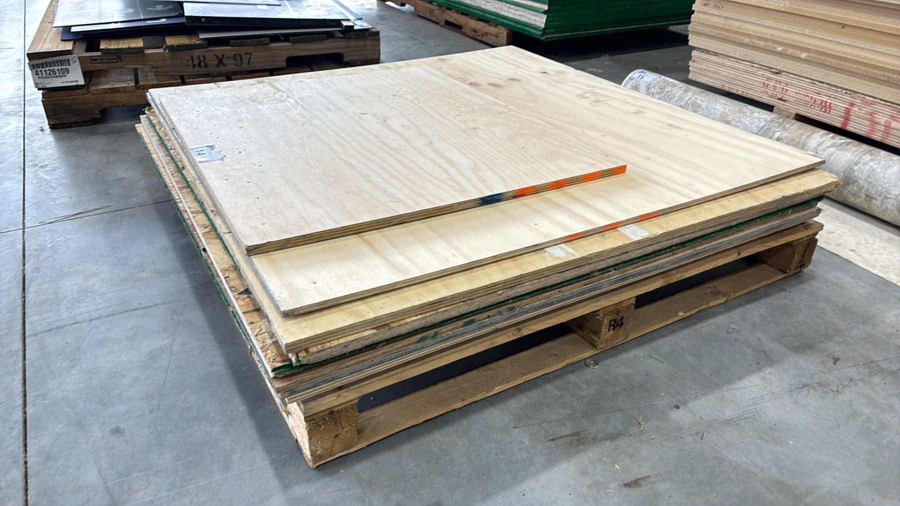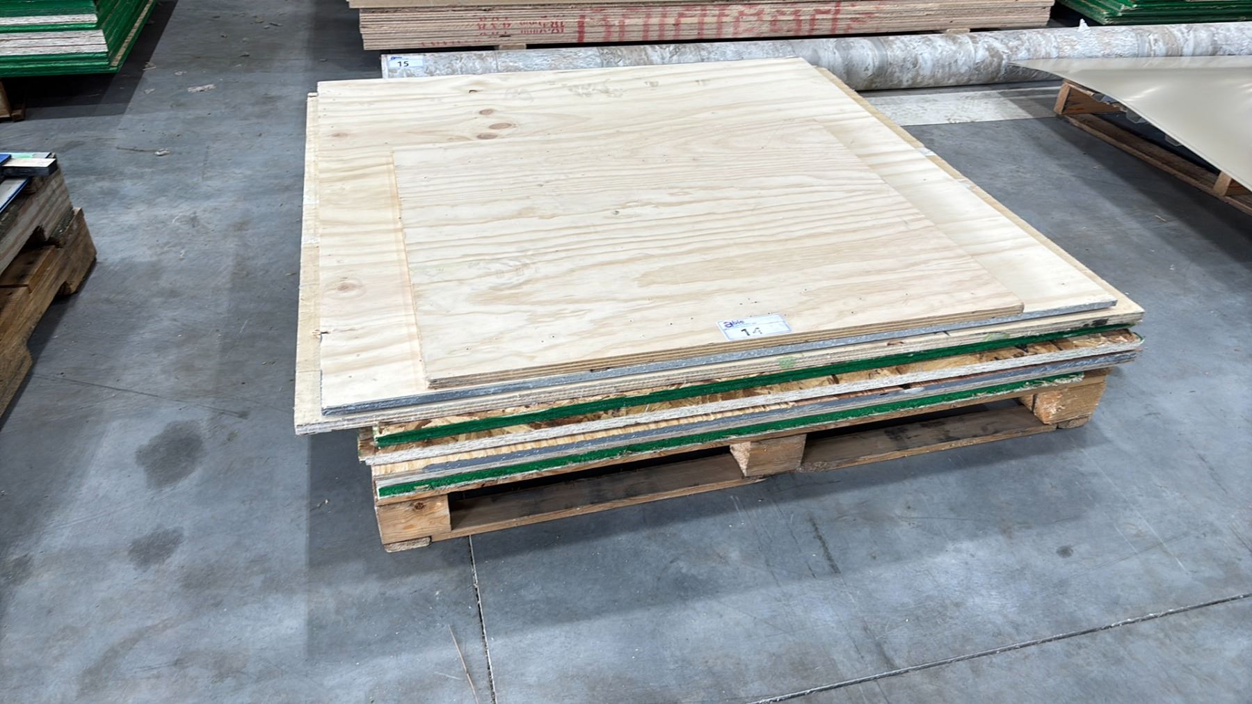 PALLET OF ASSORTED SIZE PLYWOOD PANELS