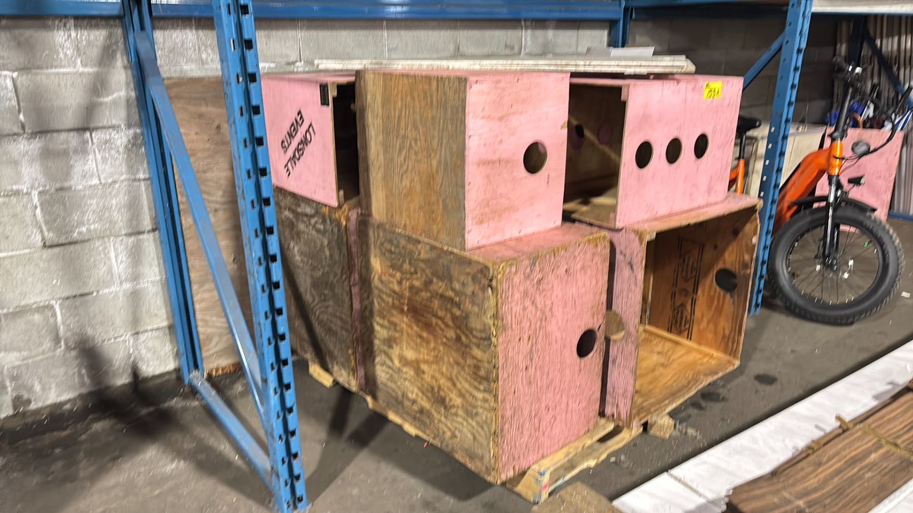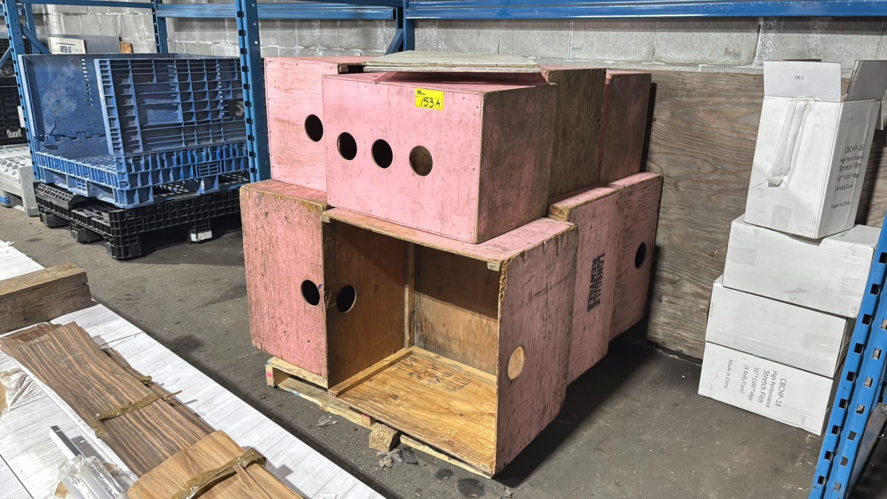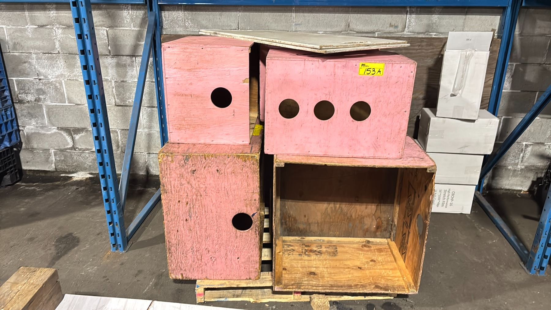 PALLET OF ASSORTED SIZE WOODEN EVENT/ BANQUET STORAGE CRATES *LOCATED AT 19757 92A AVE, LANGLEY*