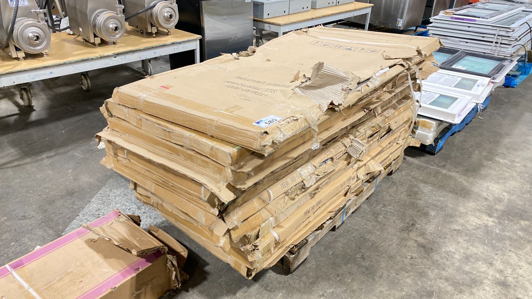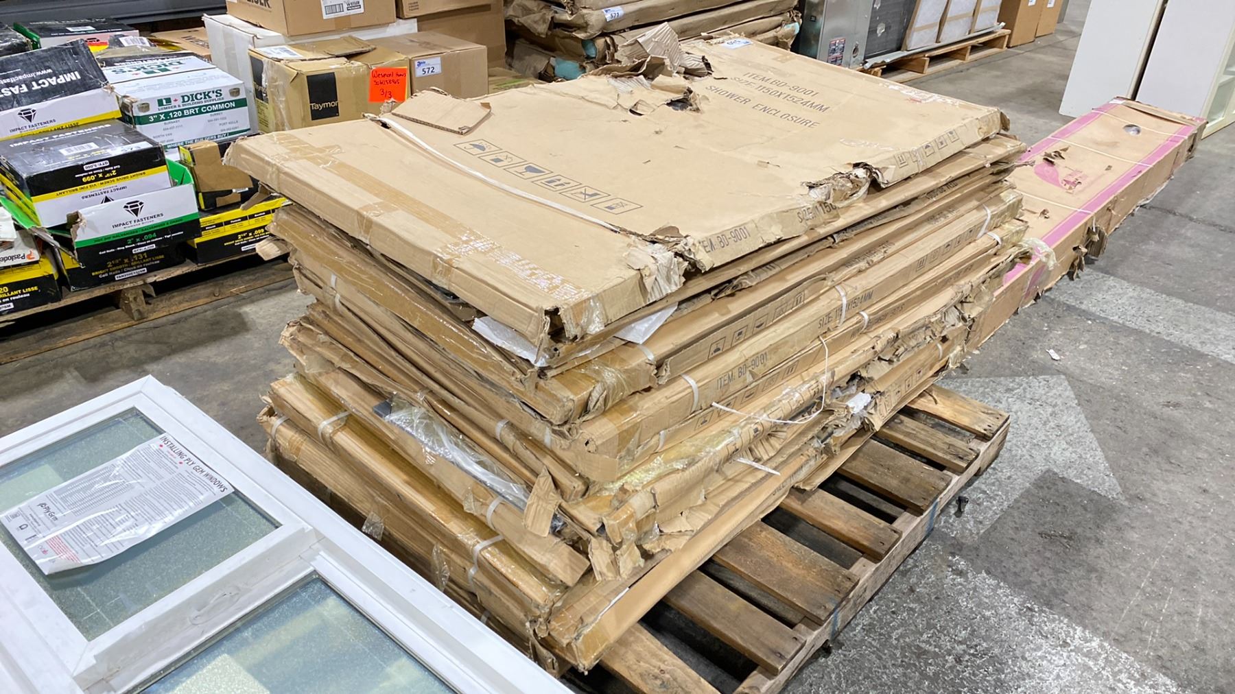 PALLET OF ASSORTED SIZED WHITE ACRYLIC SHOWER ENCLOSURES