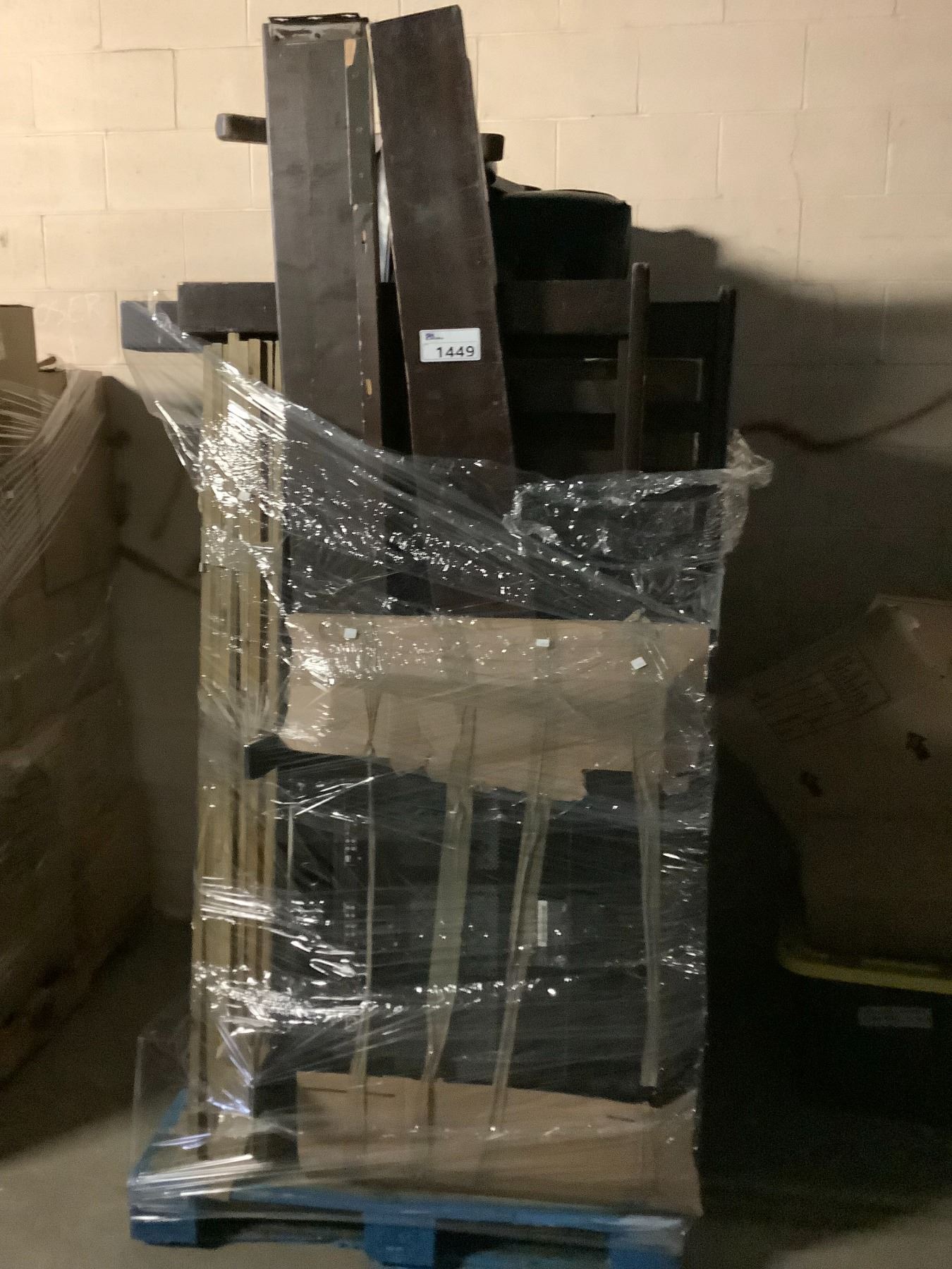 PALLET OF ASSORTED STORAGE LOCKER CONTENTS (HOUSEHOLD ITEMS, FURNITURE, MISC)