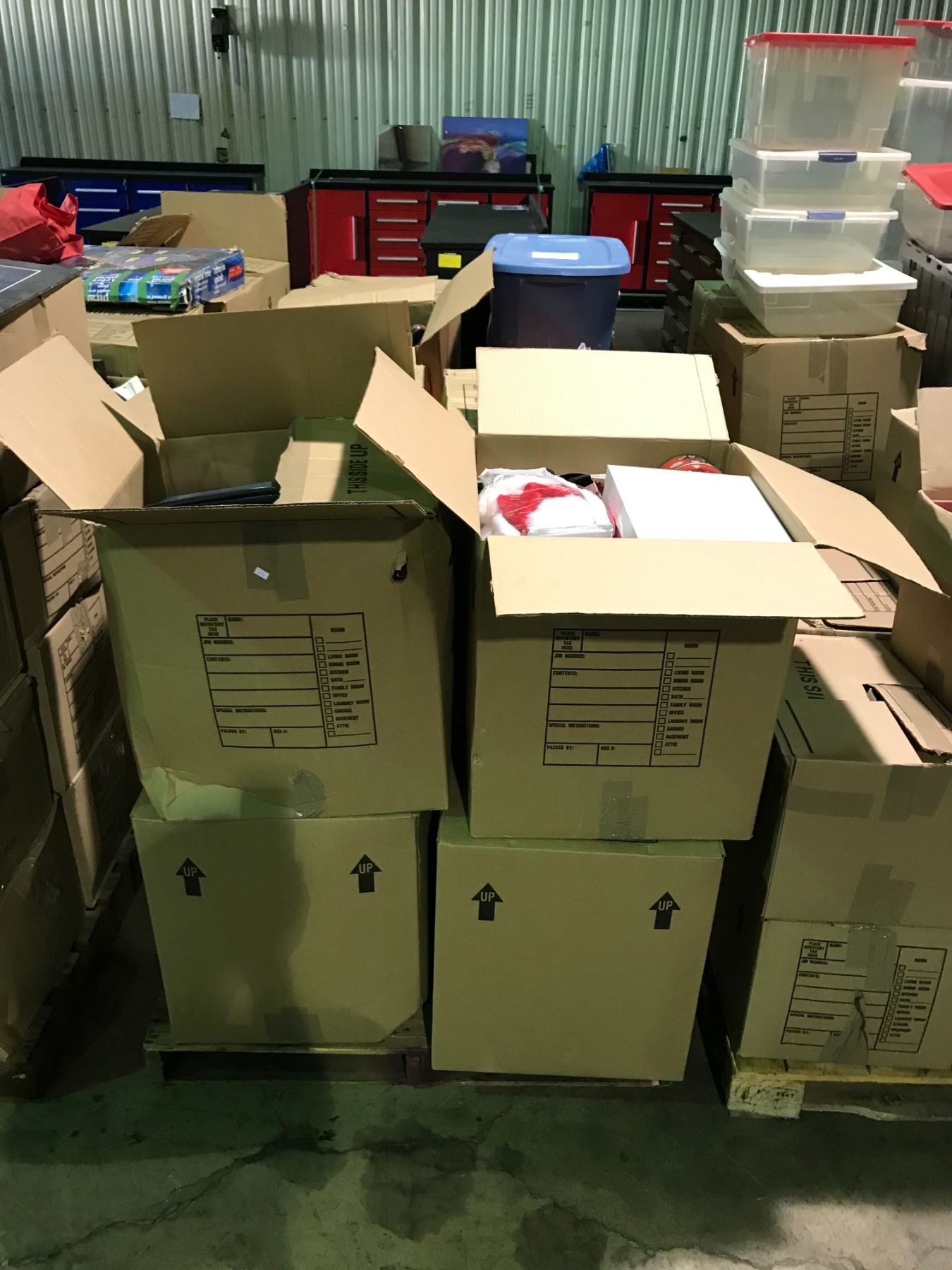 PALLET OF ASSORTED STORAGE LOCKER KITCHENWARES AND MISC.