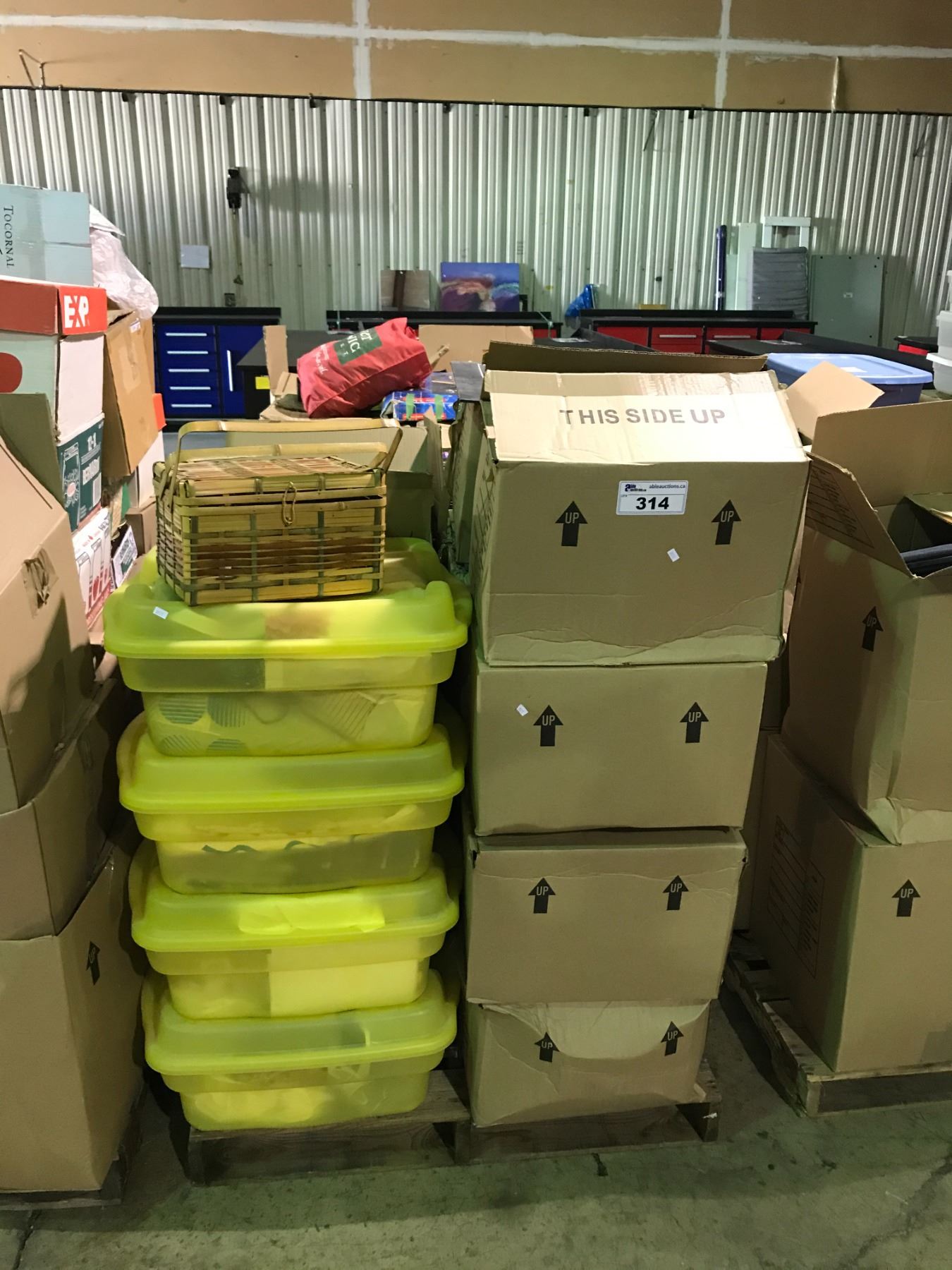 PALLET OF ASSORTED STORAGE LOCKER KITCHENWARES AND MISC.