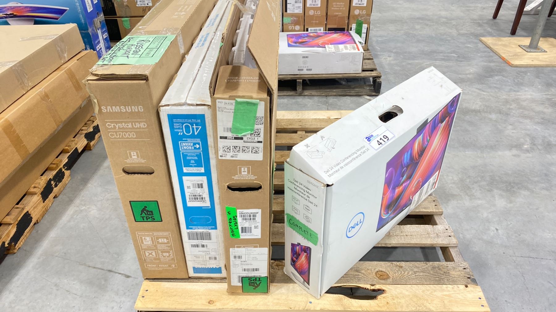 PALLET OF ASSORTED TV'S & MONITORS (MAY BE MISSING POWER CORDS, REMOTES & STANDS)