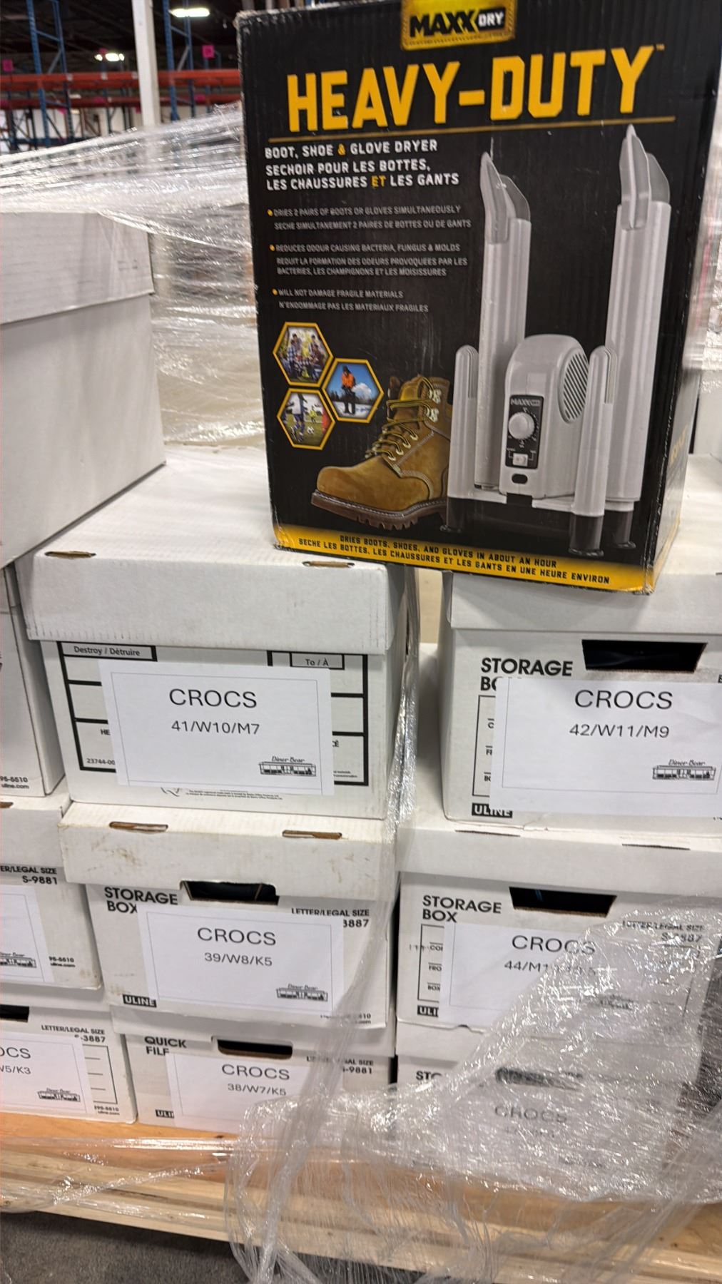 PALLET OF ASSORTED WARDROBE CROCS & BOOT, SHOE & GLOVE DRYER
