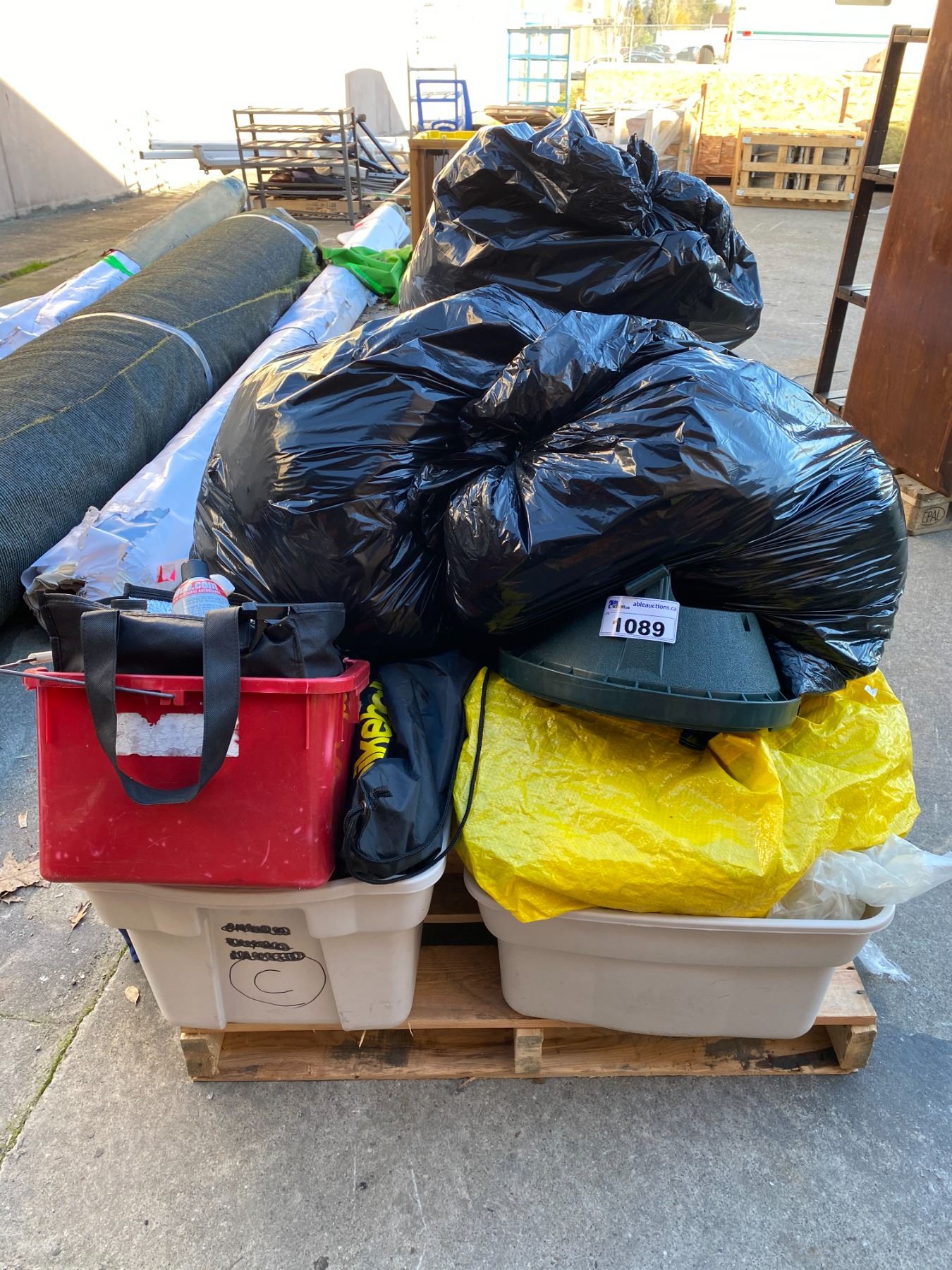 PALLET OF BAGS OF CLOTHES & MISC. STORAGE LOCKER ITEMS