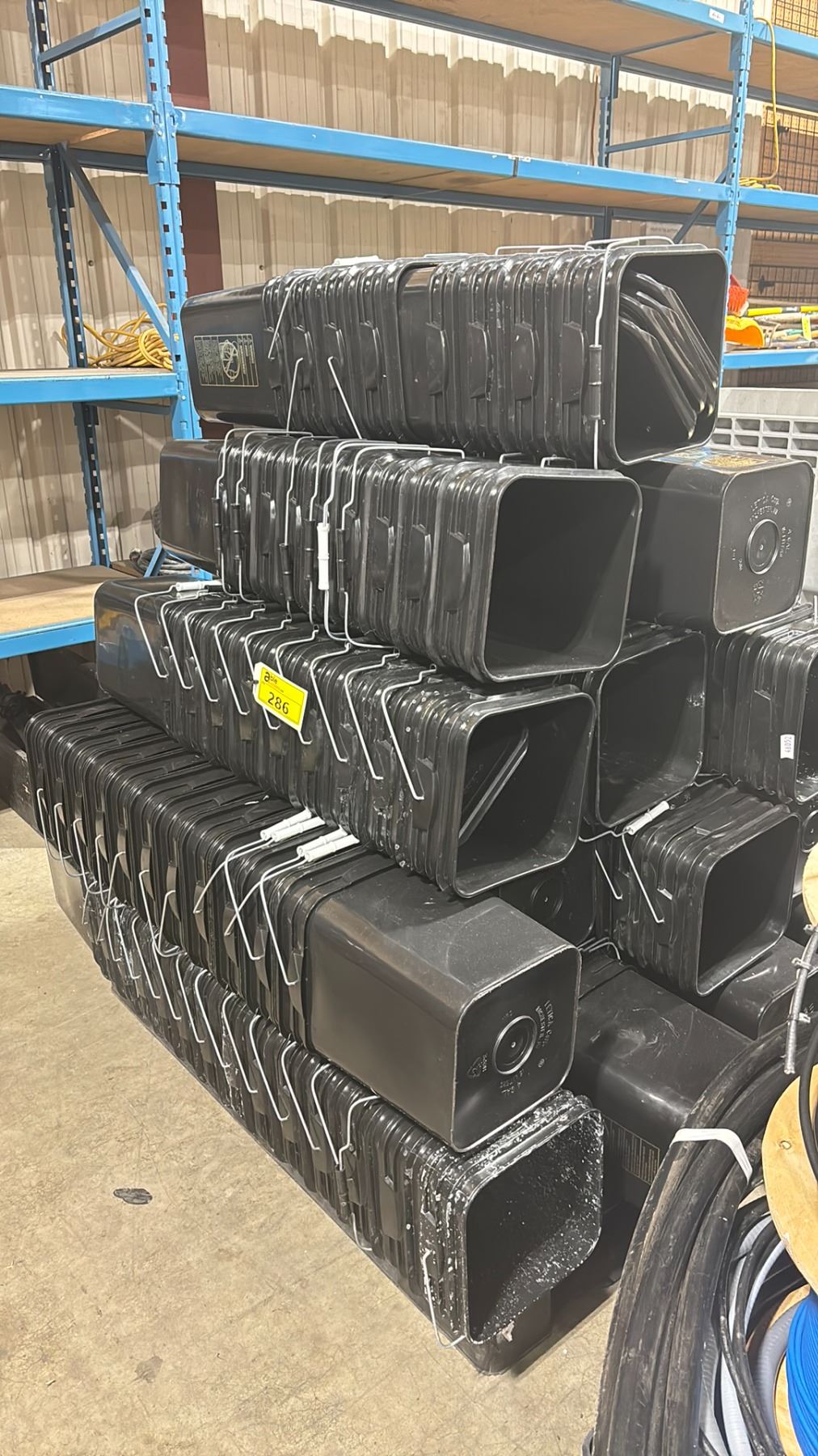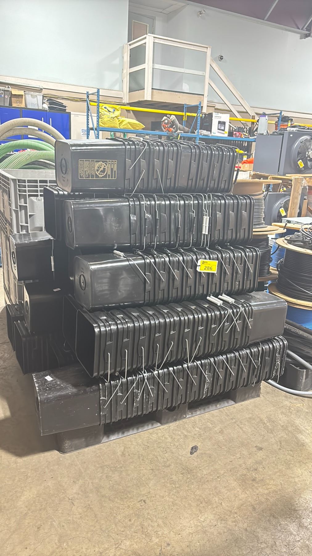 PALLET OF BLACK COMMERCIAL PLASTIC 4 GALLON BUCKETS WITH SOME LIDS