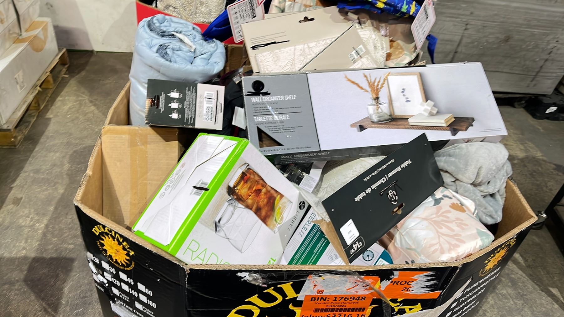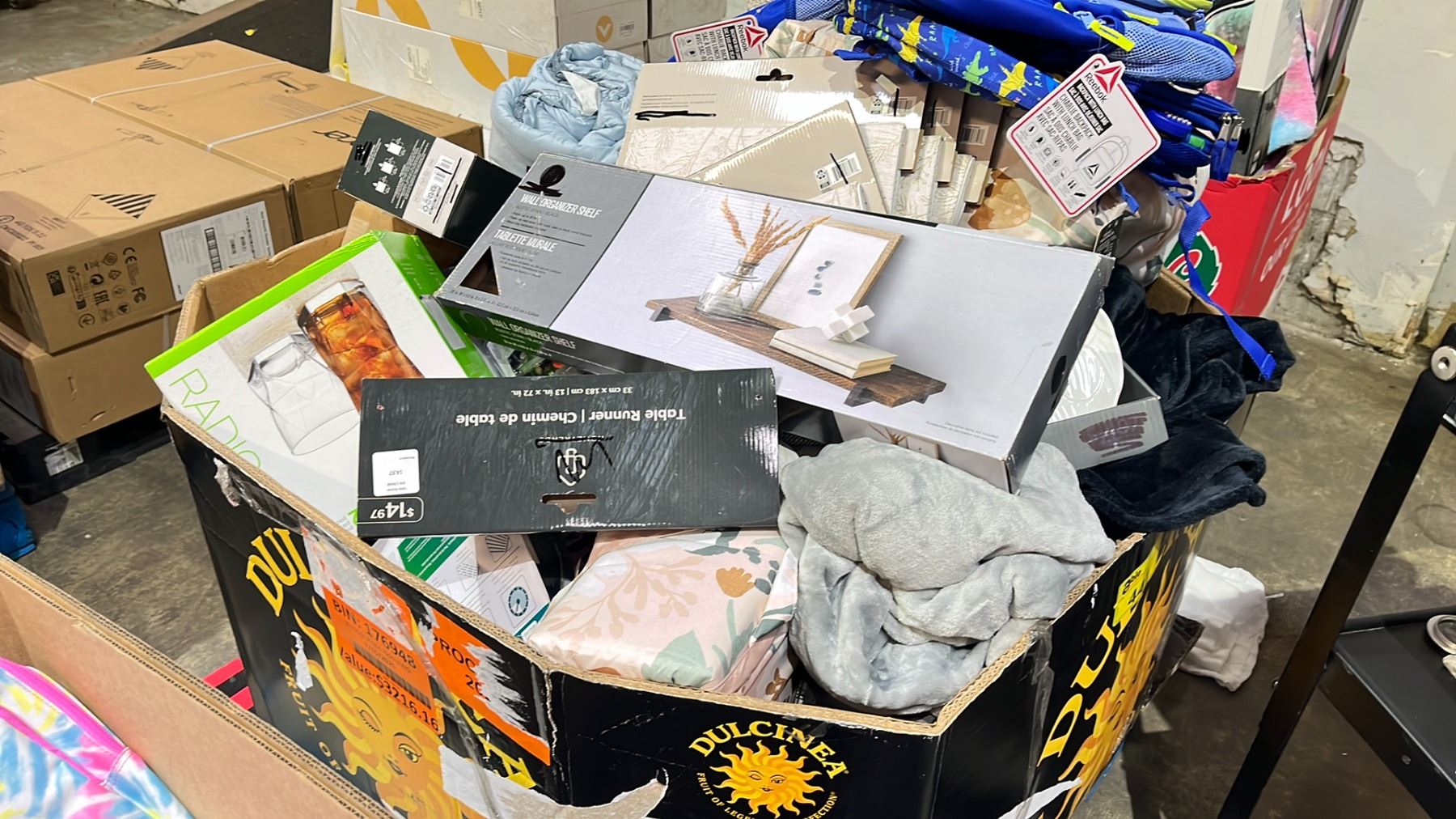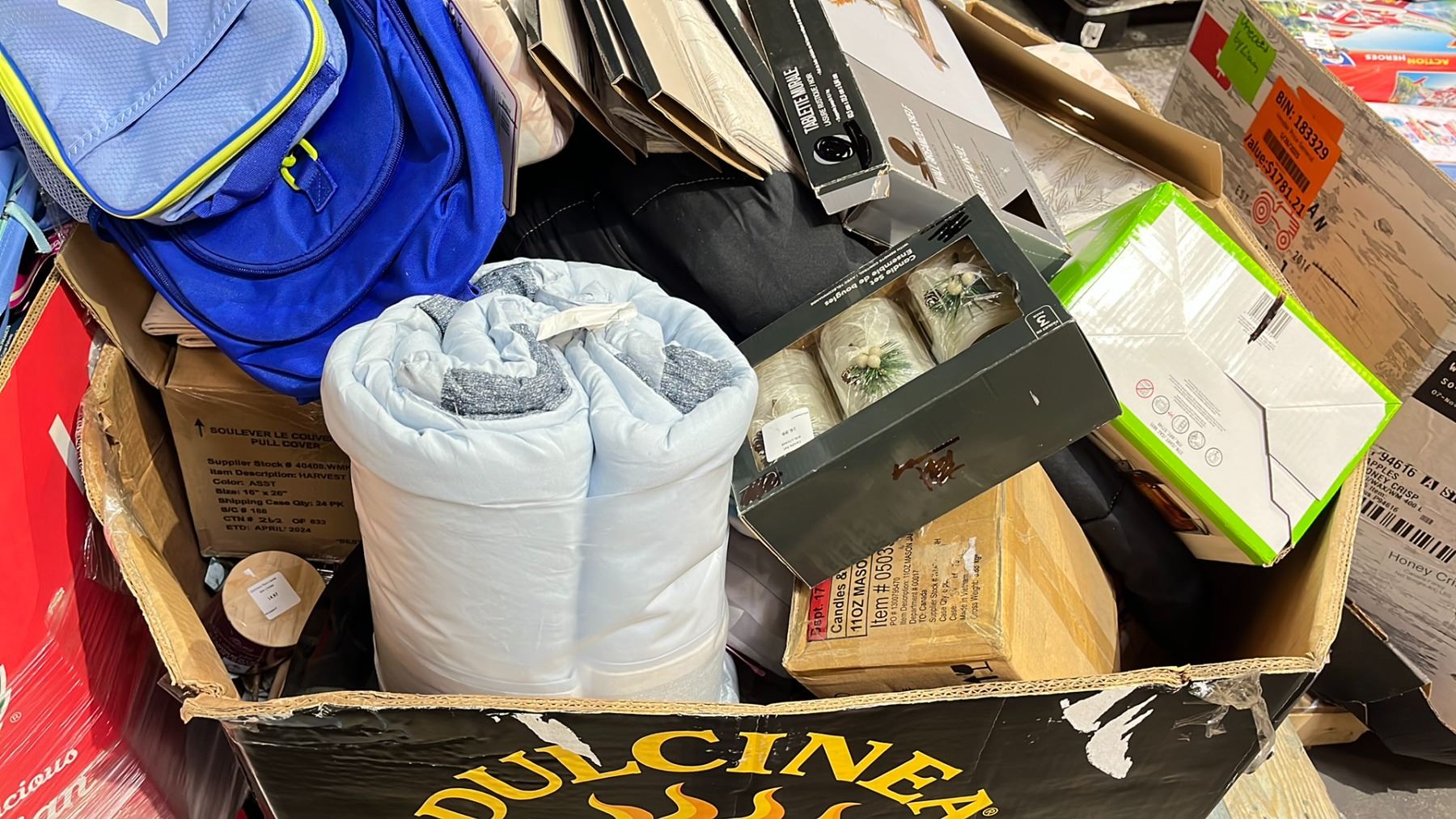 PALLET OF BLANKETS, BACKPACKS, TABLE RUNNER, GLASSWARE, CANDLES & MORE *MUST TAKE ALL*