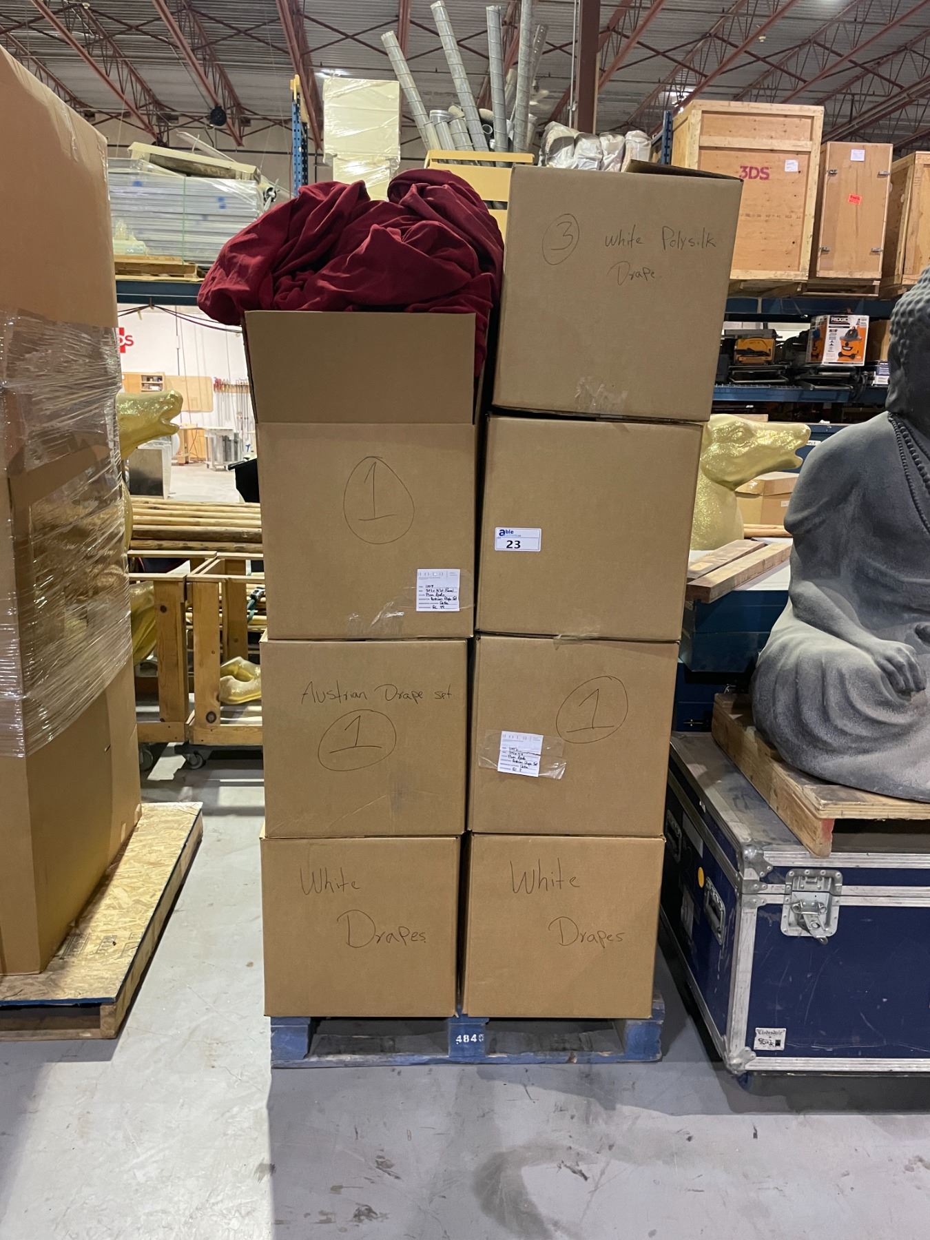 PALLET OF BOXES OF ASSORTED DECORATIVE DRAPES