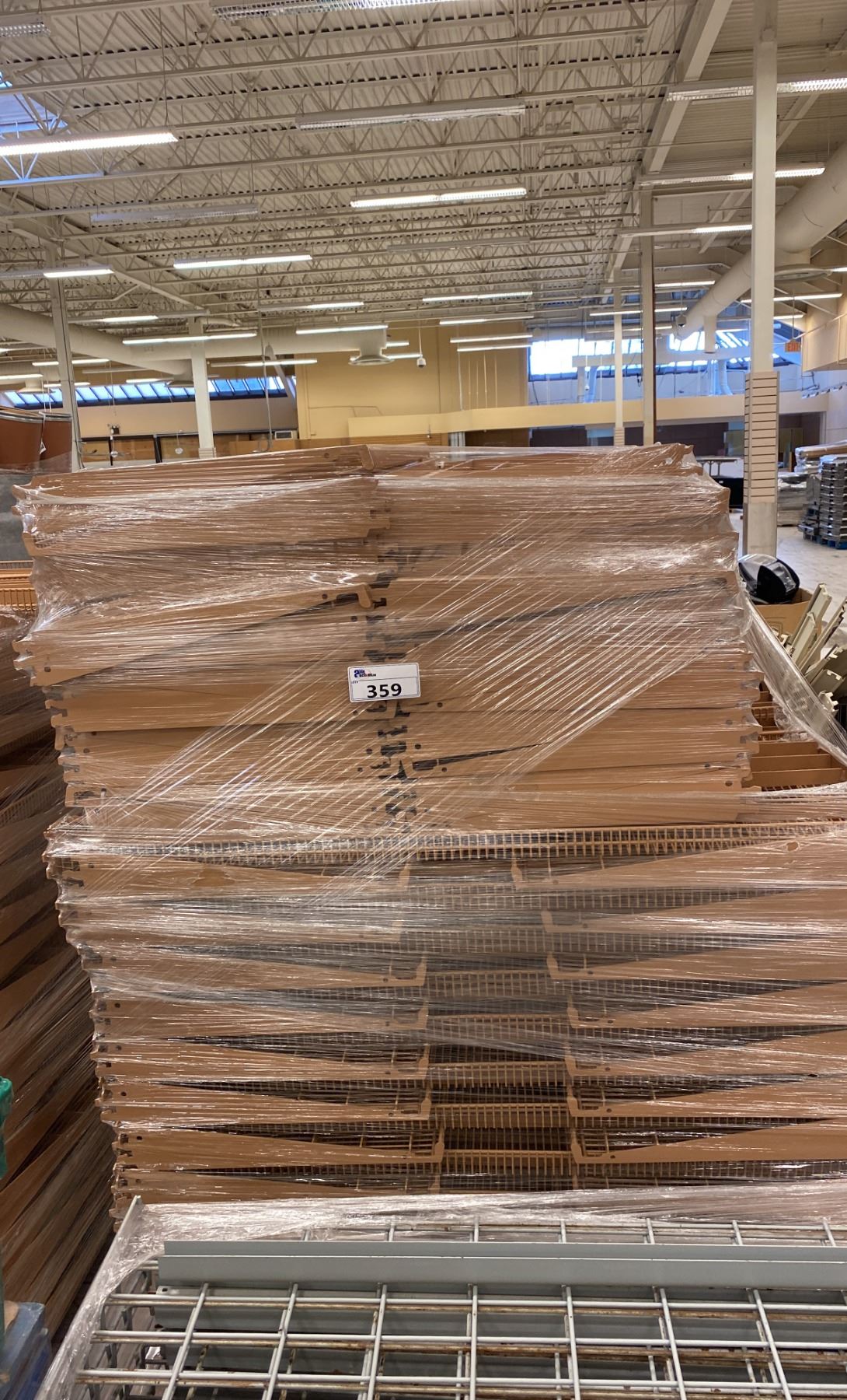 PALLET OF BROWN MESH TILT IN GONDOLA DISPLAY SHELVING SHELVES