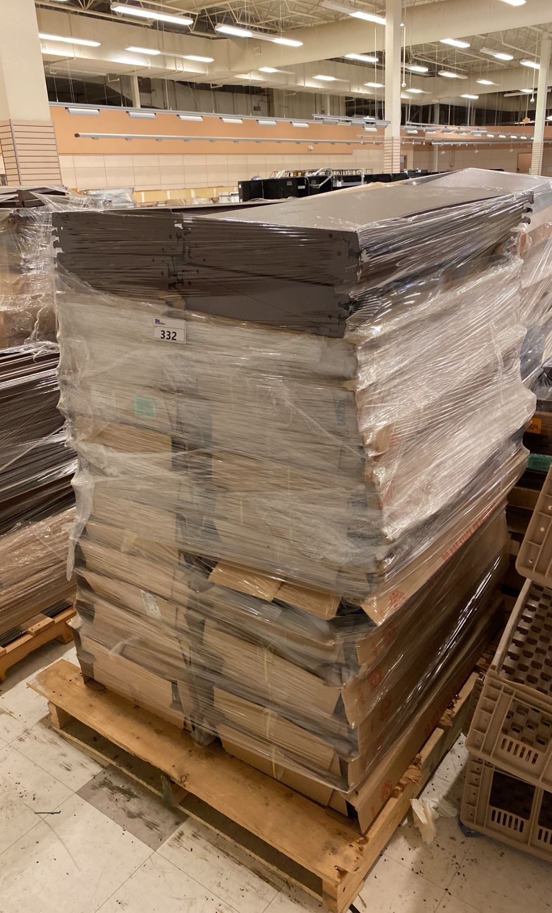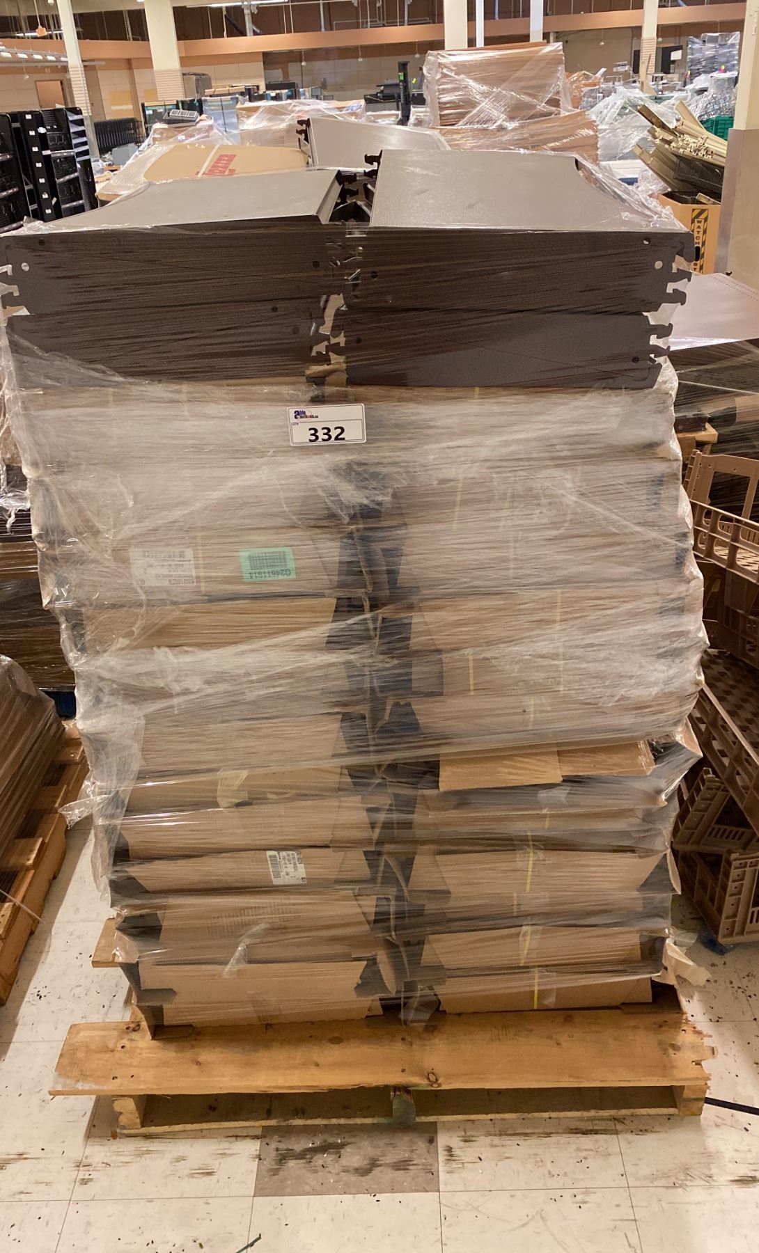 PALLET OF BROWN METAL 3 X 16 GONDOLA RADIUS ROUND INWARD END SHELVING