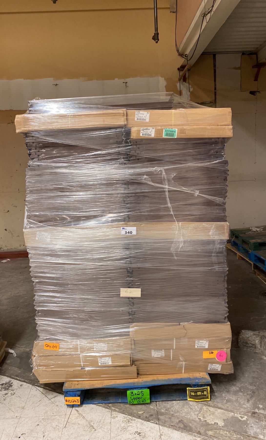 PALLET OF BROWN METAL 3 X 25 GONDOLA SHELVING UPPERS