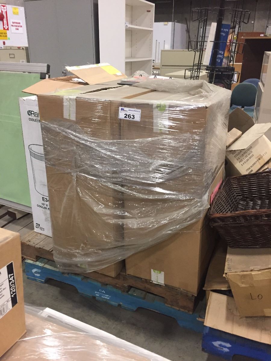 PALLET OF BUCKETS, DISPLAY STANDS AND MORE