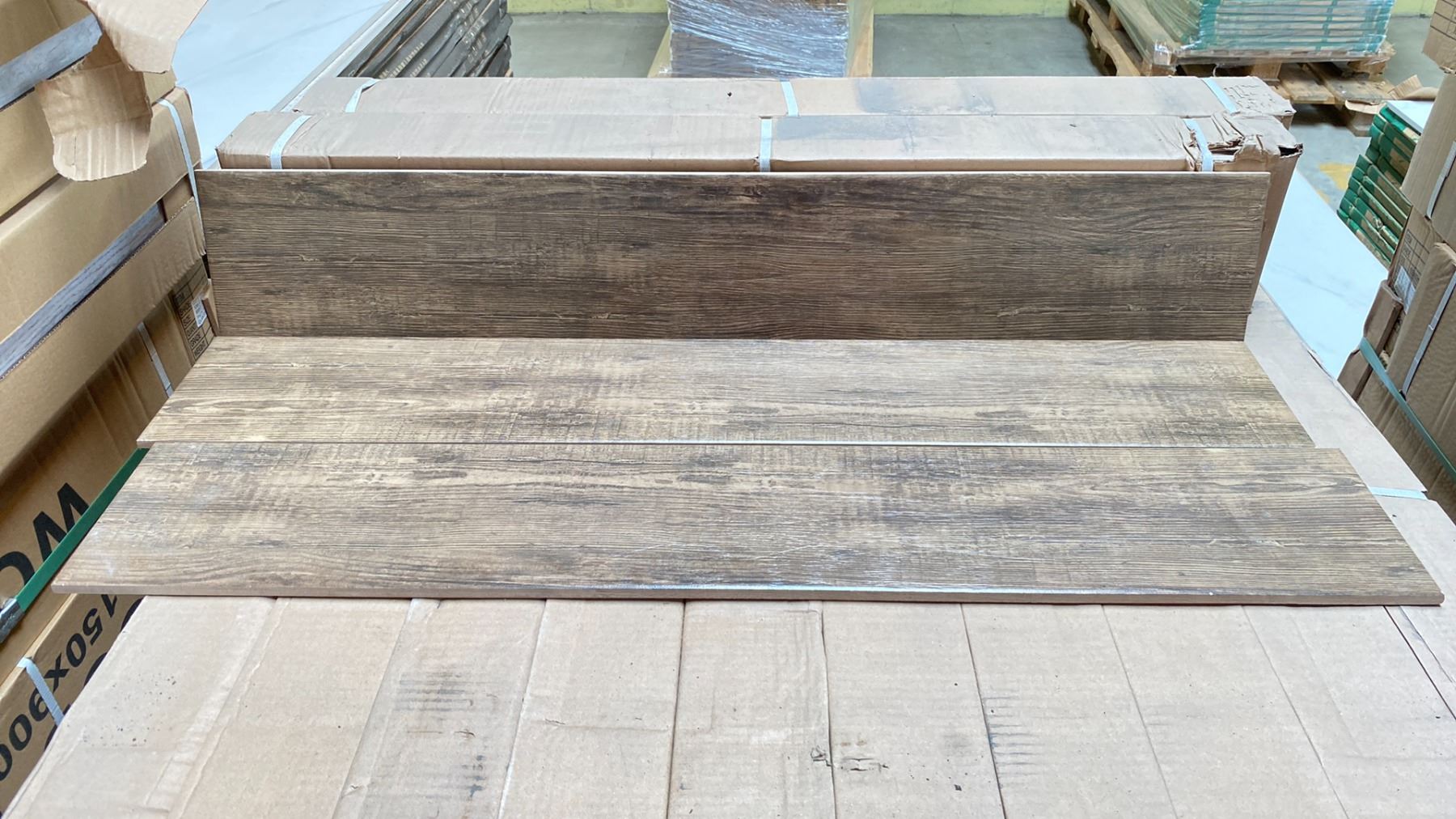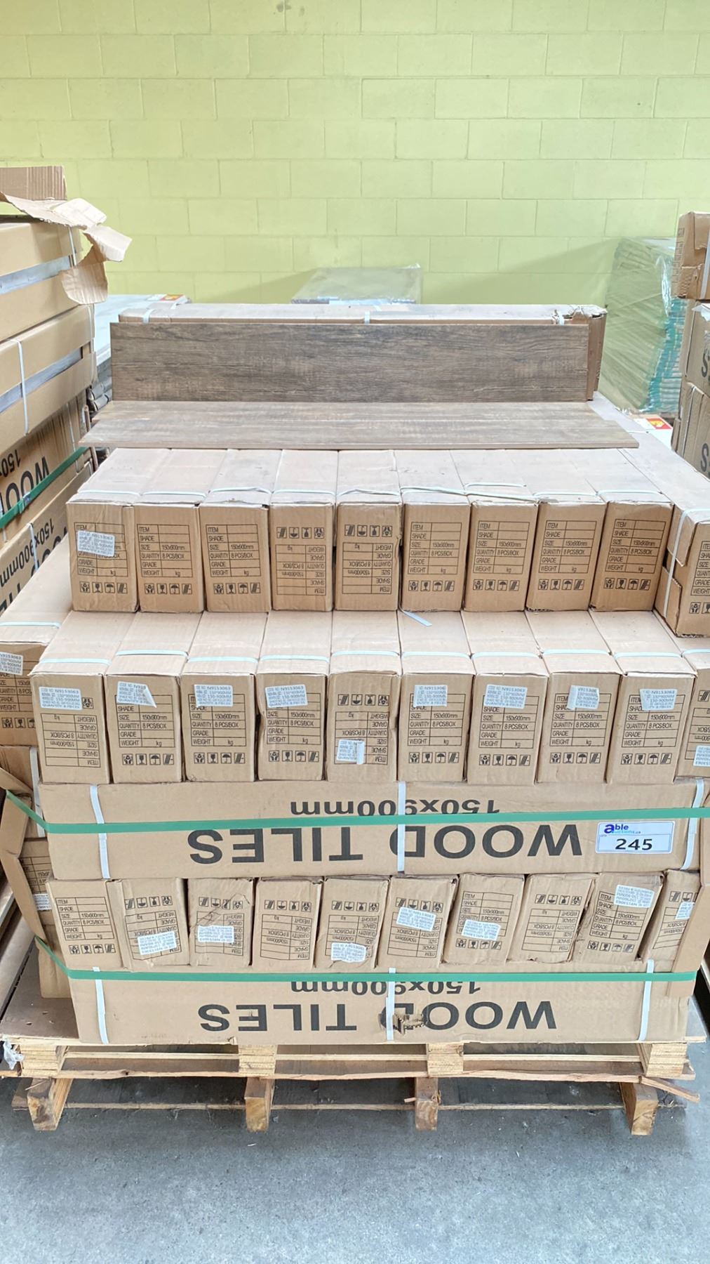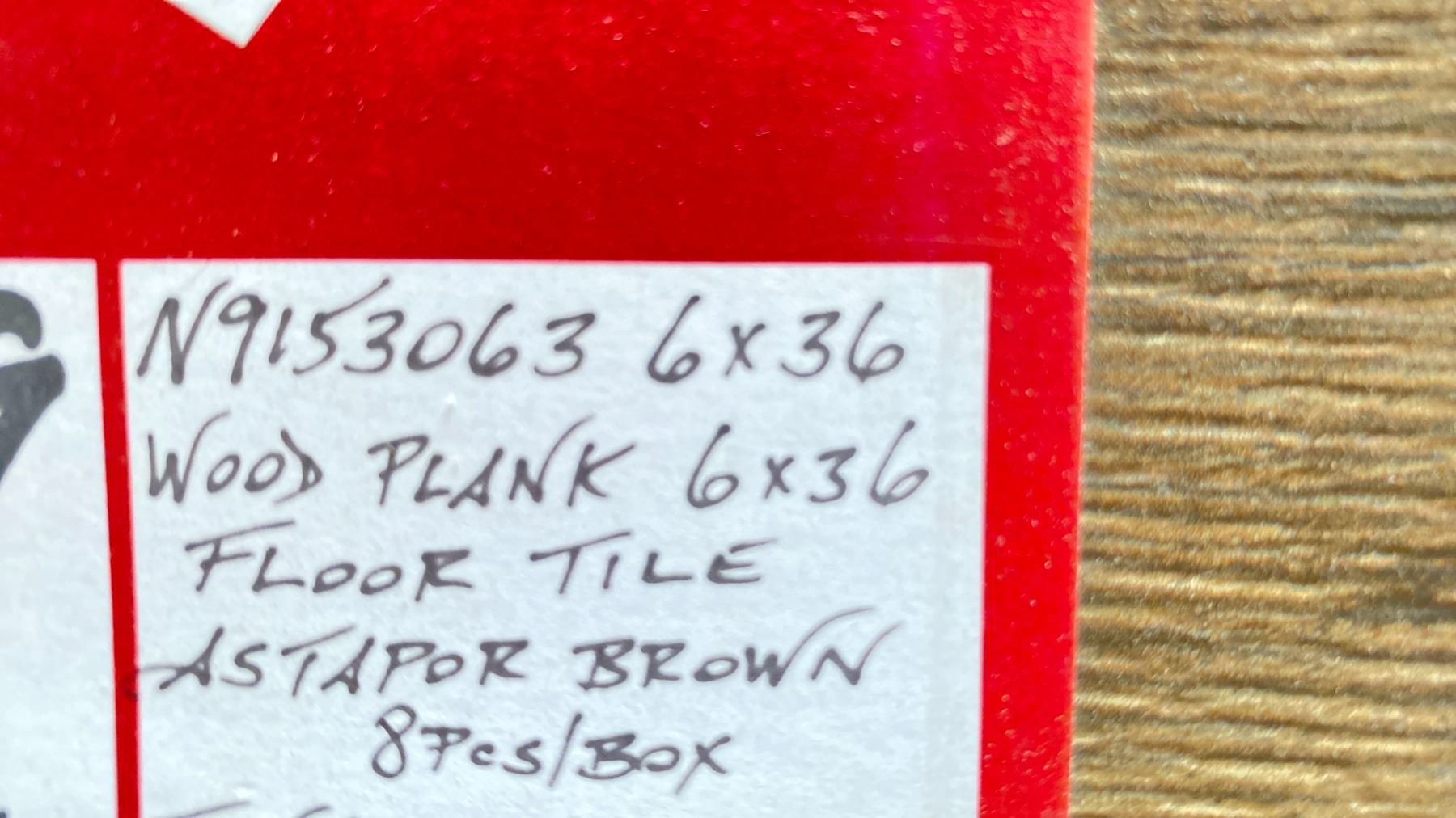 PALLET OF CERTIFIED PORCELAIN 6 X 36" PORCELAIN TILES IN ASTAPOR BROWN, 12SQ.FT. PER BOX, APPROX 52 BOXES, APPROX 624SQ.FT. TOTAL