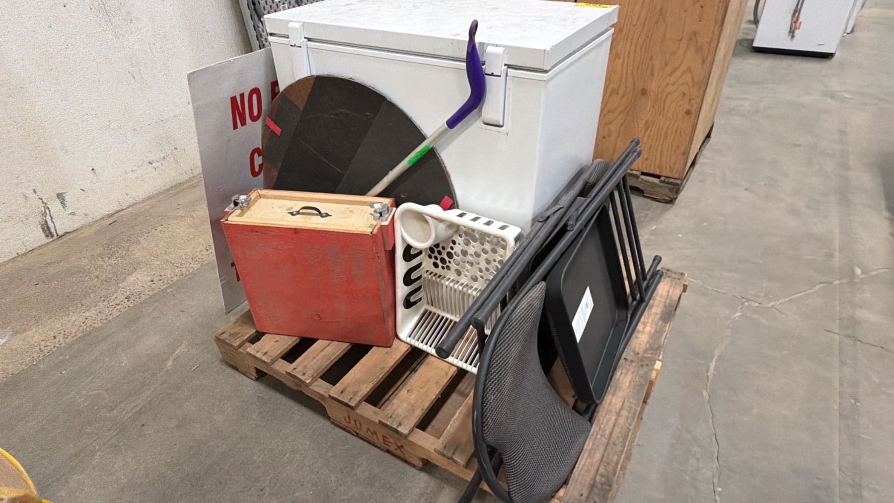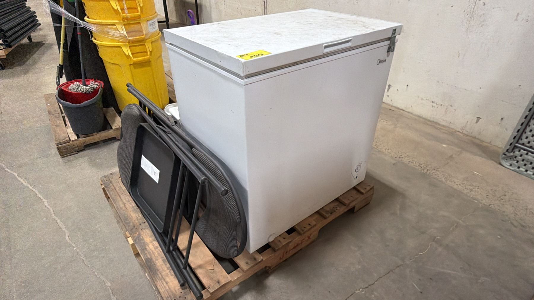 PALLET OF CHEST FREEZER & FOLDING CHAIRS