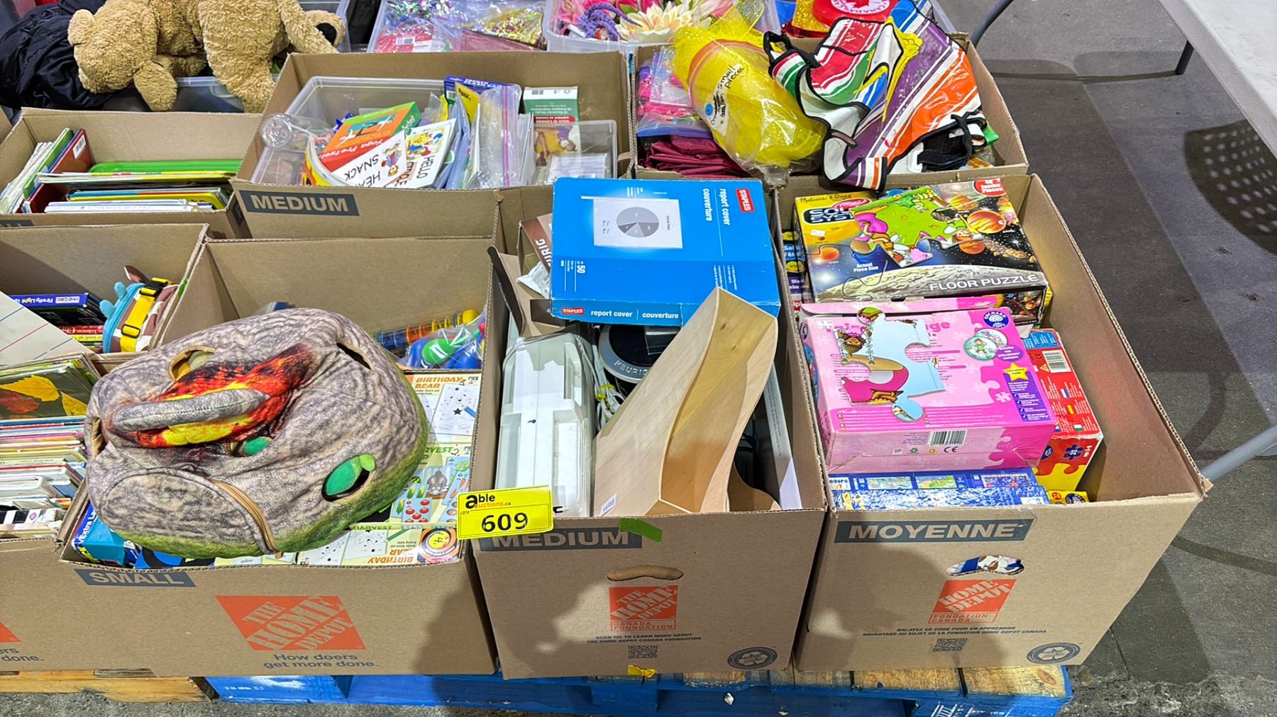 PALLET OF CHILDREN'S EDUCATIONAL GAMES, SENSORY TOYS, APRONS, FLOOR PUZZLES & MORE *MUST TAKE ALL ON PALLET*
