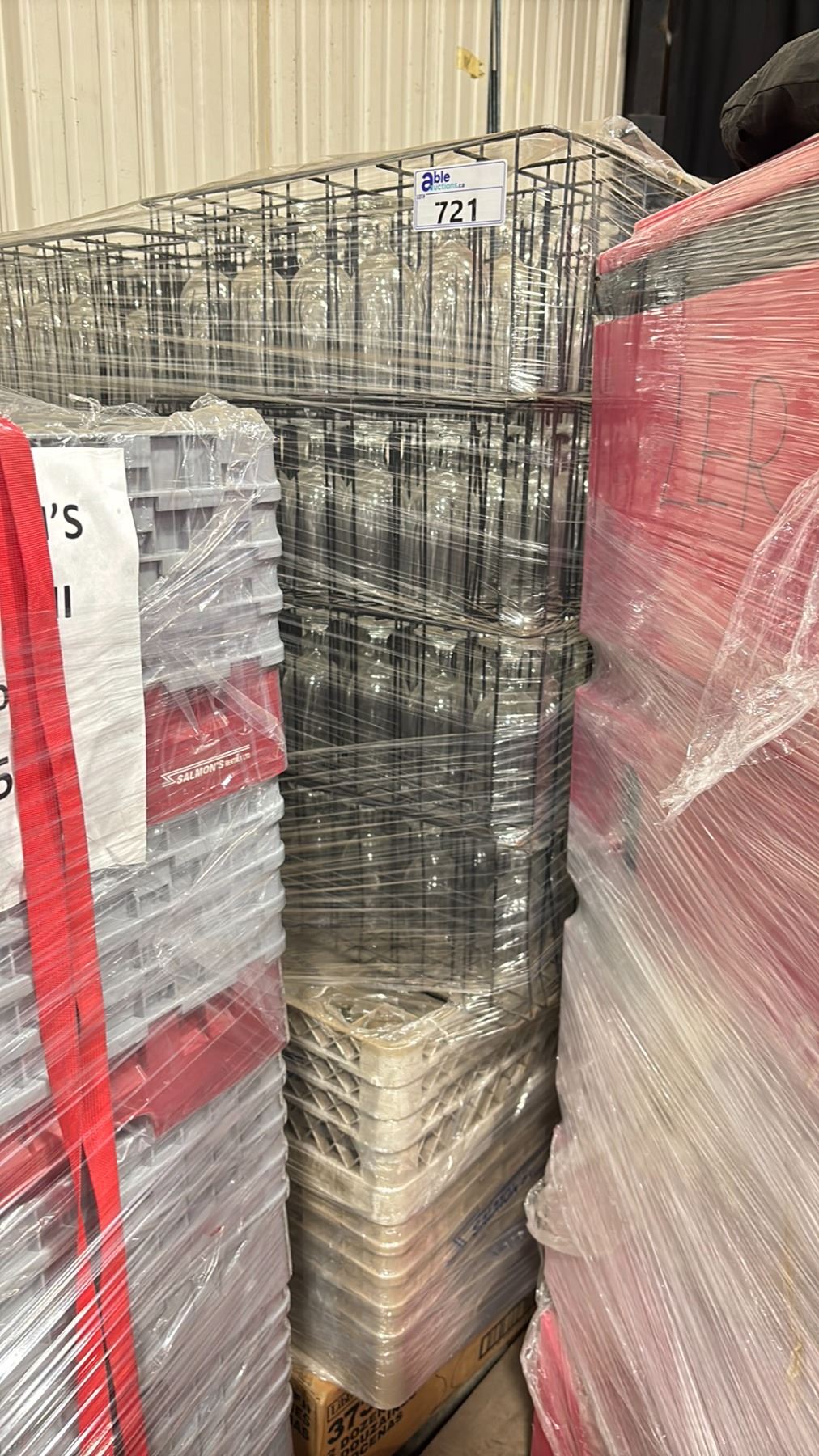 PALLET OF COMMERCIAL RESTAURANT TRAYS OF 14 OZ STEMMED BEER GLASSES & CHAMPAGNE FLUTES & LIBBYS 3730 14 OZ STEMMED BEER GLASSES ( APPROX. 20 GLASSES PER TRAY/ APPROX. 498 BEER GLASSES )