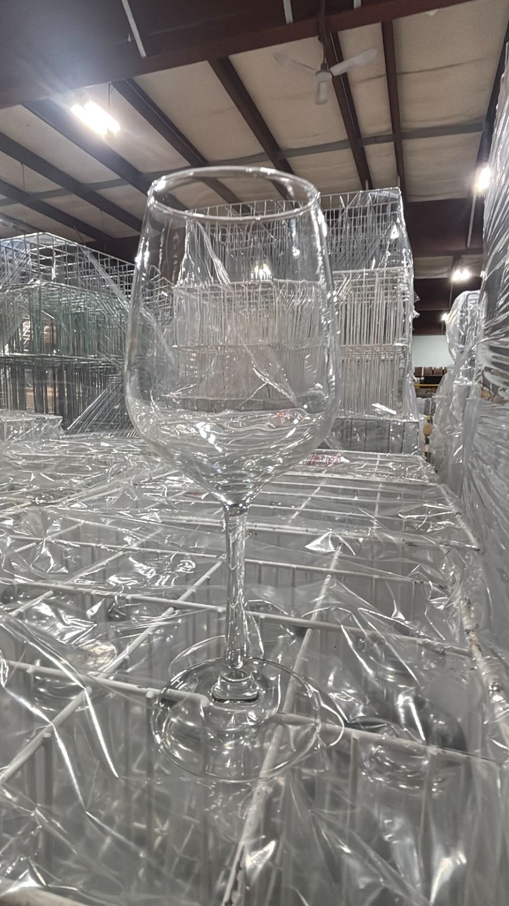 PALLET OF COMMERCIAL RESTAURANT TRAYS OF STEMMED RED WINE GLASSES ( APPROX. 20 GLASSES PER TRAY/ APPROX. 720 PCS )