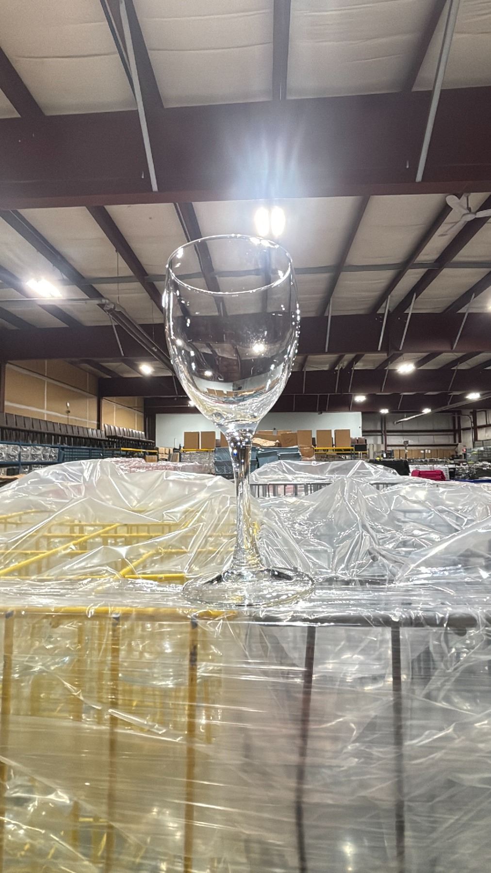 PALLET OF COMMERCIAL RESTAURANT TRAYS OF STEMMED WHITE WINE GLASSES & STEMMED LIQUEUR GLASSES ( APPROX. 20 GLASSES PER TRAY/ APPROX. 840 PCS )