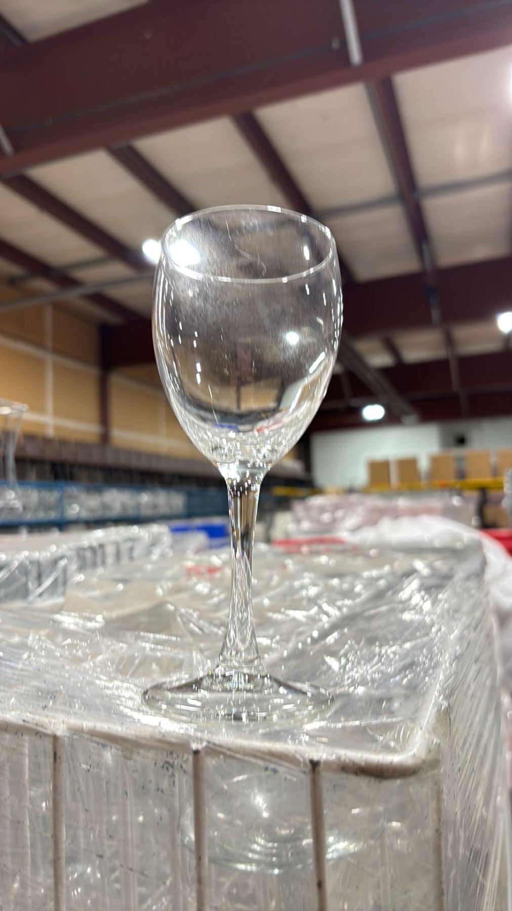 PALLET OF COMMERCIAL RESTAURANT TRAYS OF STEMMED WHITE WINE GLASSES ( APPROX. 20 GLASSES PER TRAY/ APPROX. 820 PCS )
