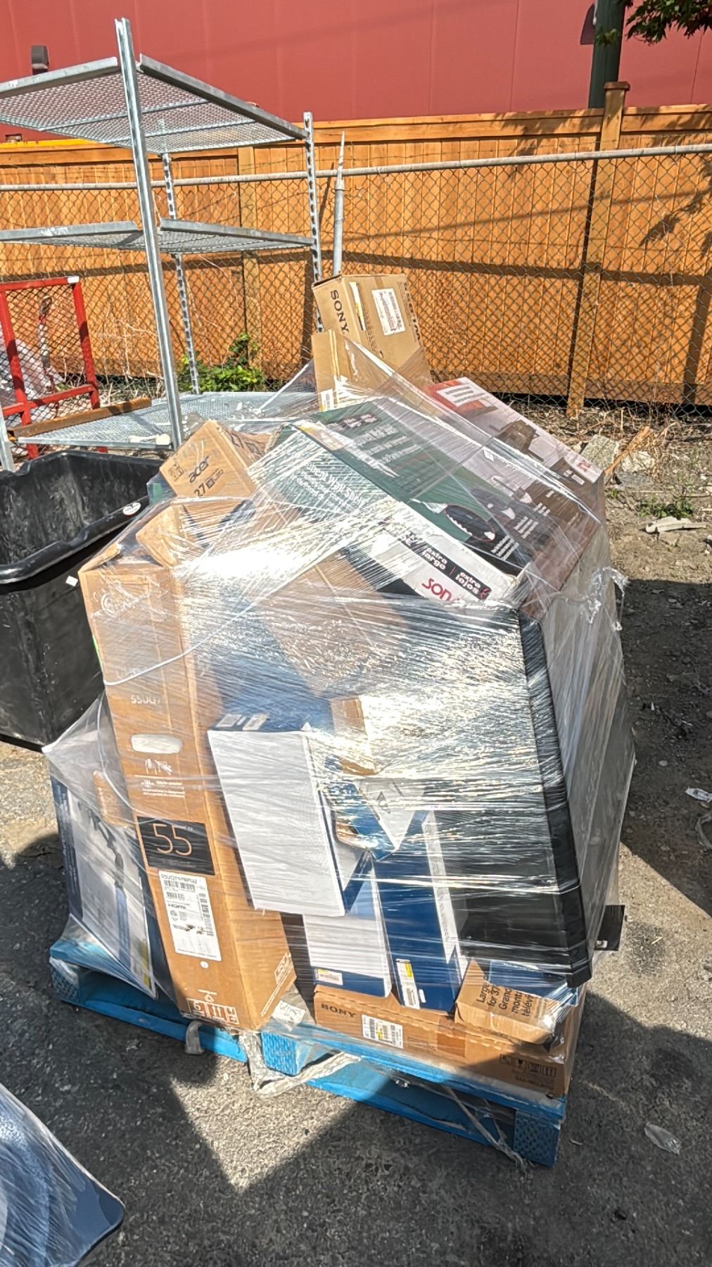 PALLET OF COMPONENT WALL SHELF, ELECTRIC FIREPLACE, ACER MONITOR & MORE - *UNKNOWN WORKING CONDITION/MAY BE MISSING PARTS & PIECES/MUST TAKE ALL ON PALLET*