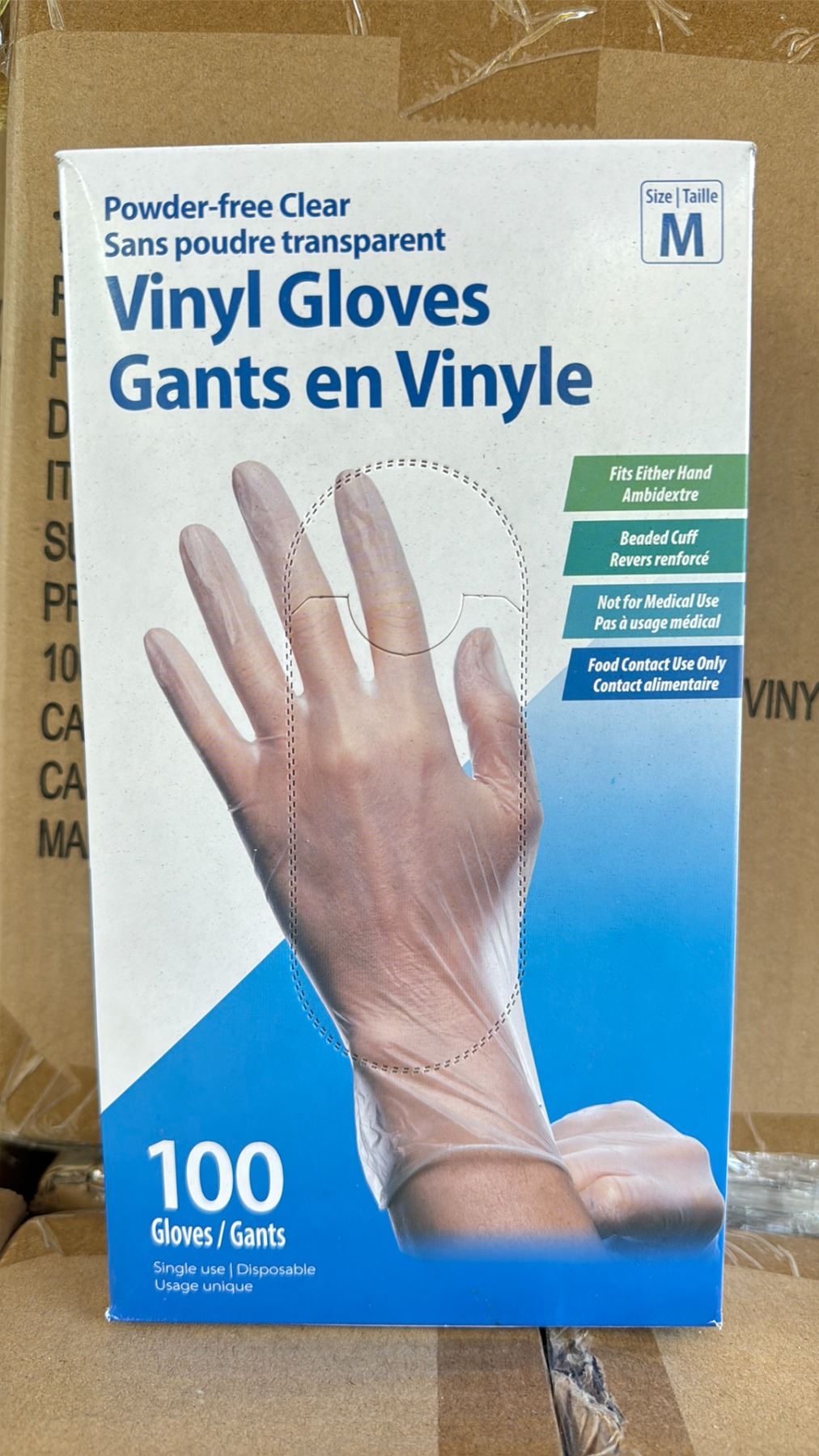 PALLET OF DISPOSABLE VINYL GLOVES - POWDER FREE, MEDIUM SIZE *100 GLOVES PER BOX*