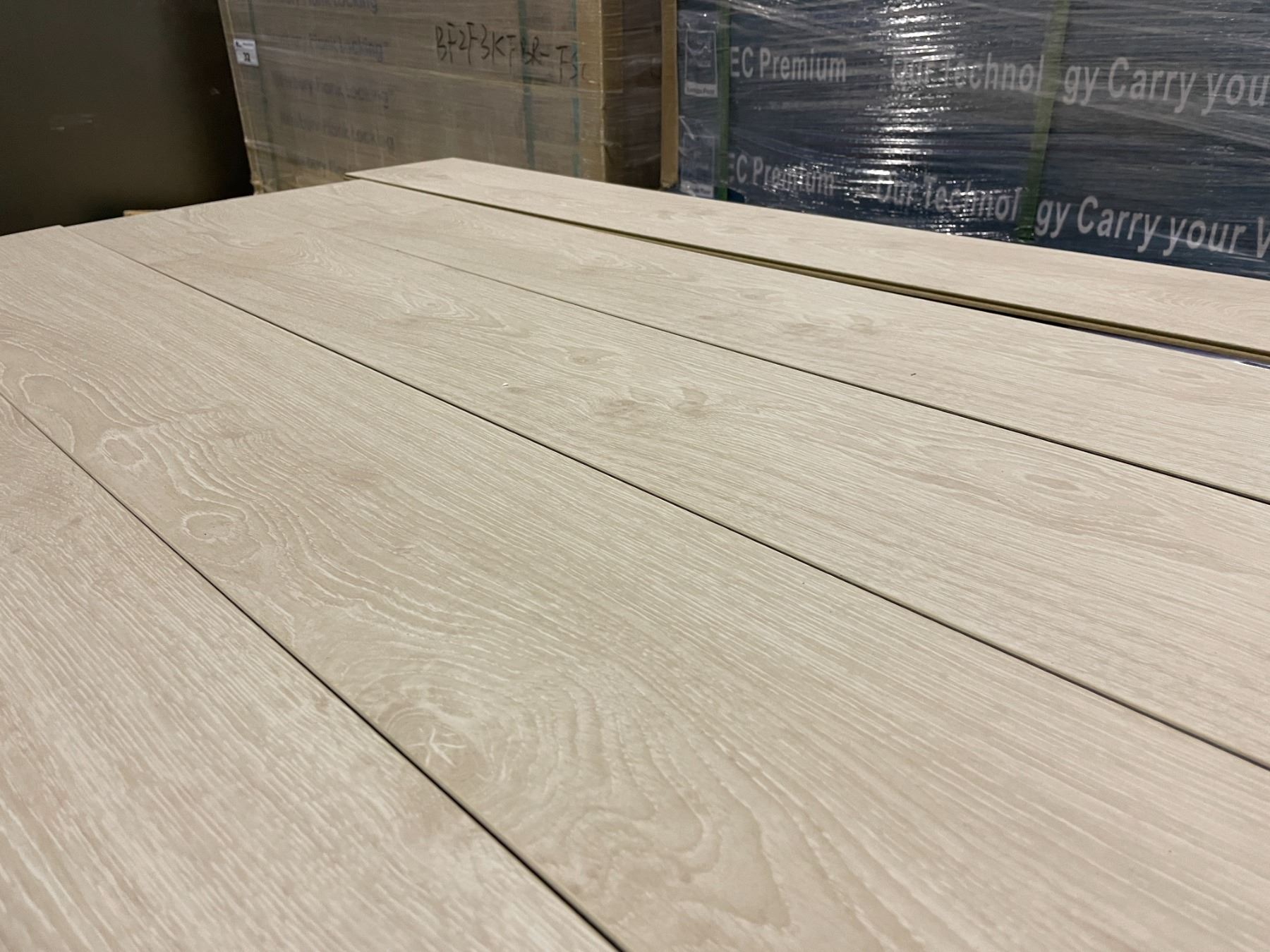 PALLET OF EC PREMIUM NATURAL IMPACT LAMINATE FLOORING (B-GRADE) PB LIGHT ,42 BOXES 23.74 SQ.FT PER BOX TOTAL SQUARE FOOTAGE 997.08 SQ.FT