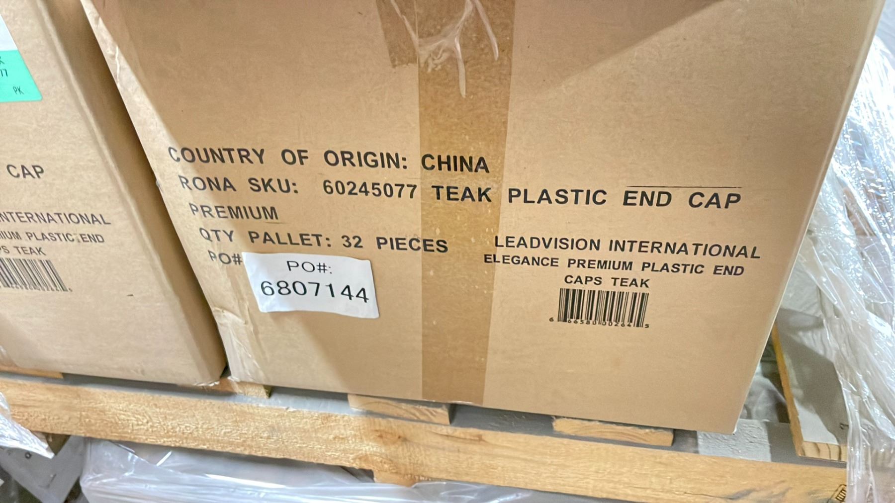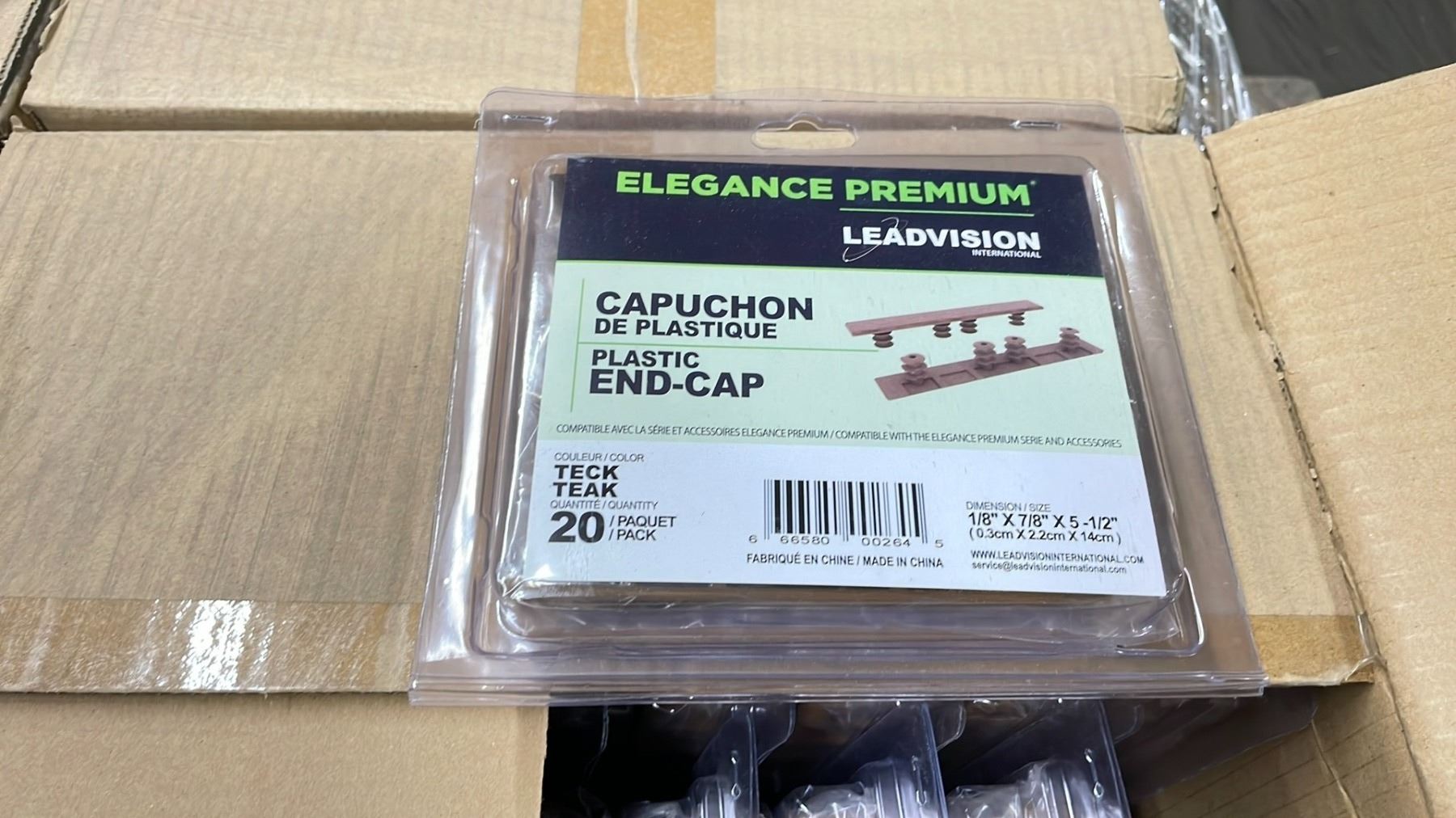 PALLET OF ELEGANCE COLLECTION 20 PACK TEAK PLASTIC END CAPS *COMPATIBLE WITH ELEGANCE PREMIUM COLLECTION* 12 BOXES *MUST TAKE ALL ON PALLET*